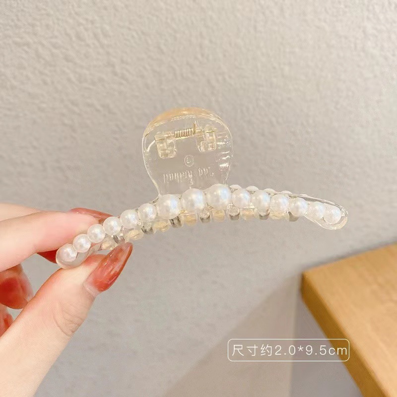 韩国ins珍珠发夹后脑勺大号头发夹子头饰优雅气质发抓鲨鱼夹发卡