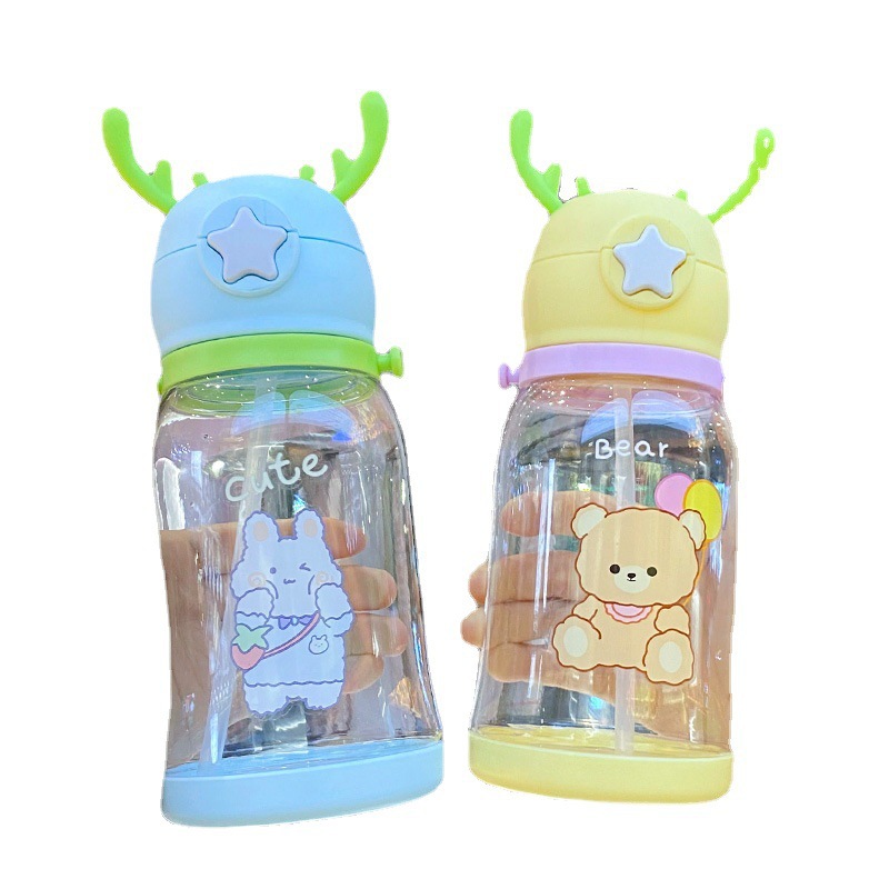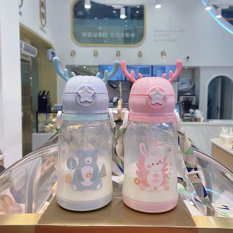 网红鹿角水杯学生塑料杯高颜值儿童便携吸管杯子幼儿园户外水壶