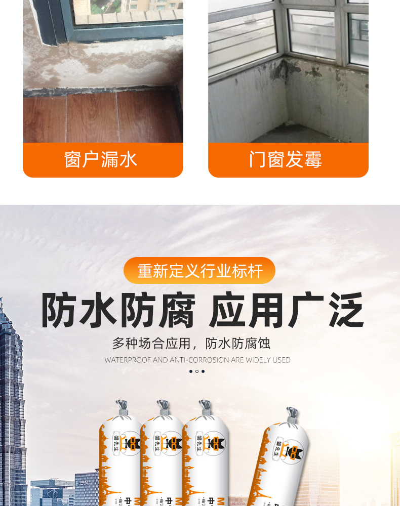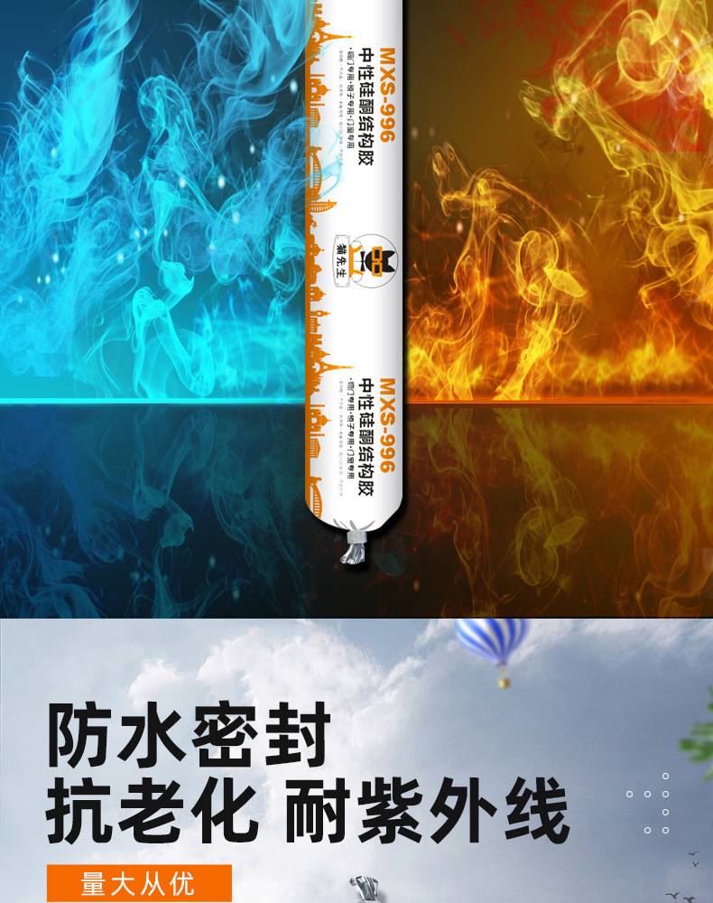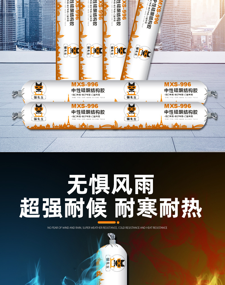 猫先生996中性硅酮结构胶门窗粘接密封瓷砖护墙板粘接等