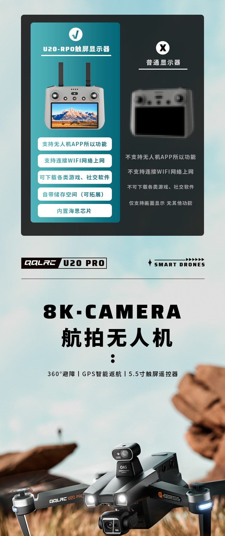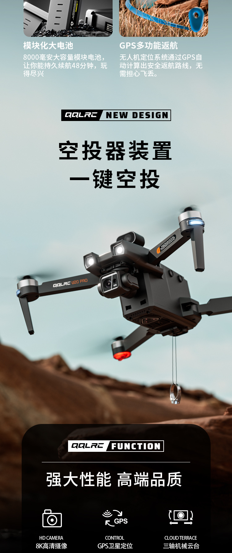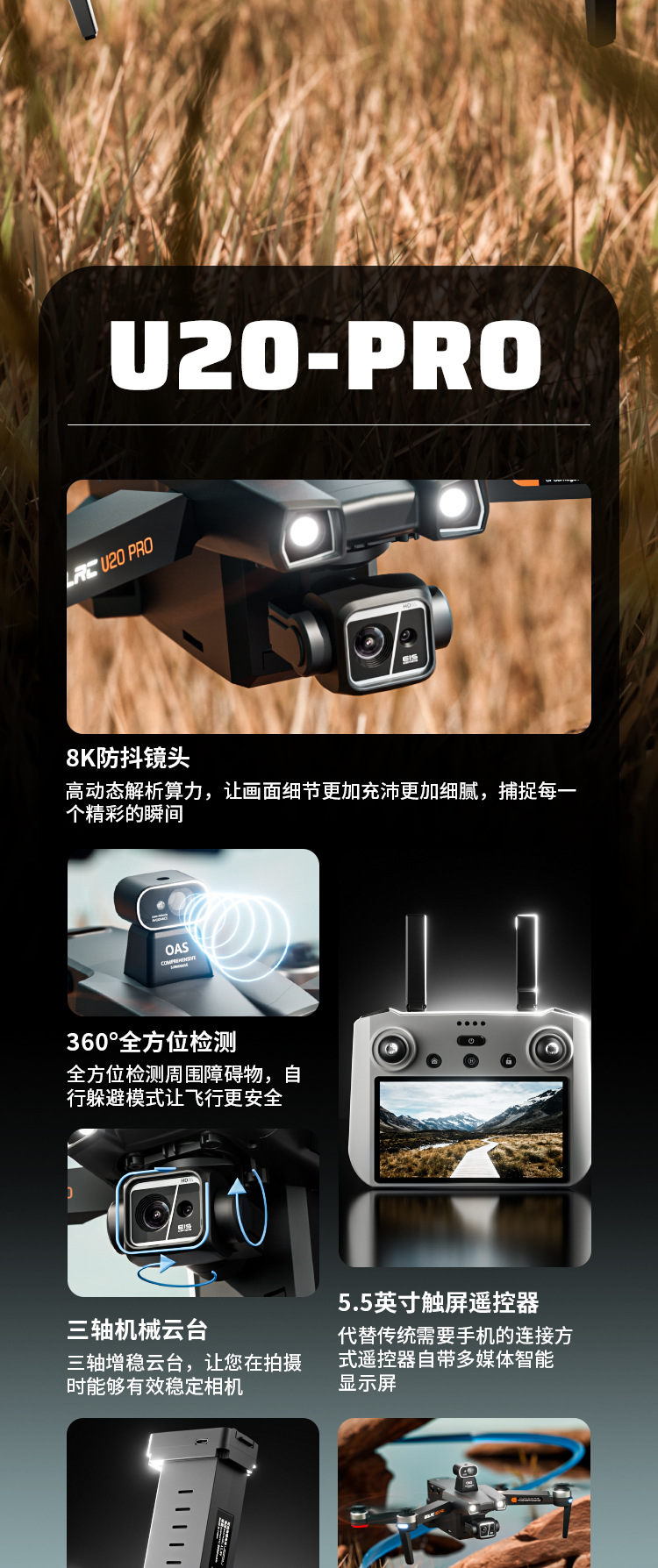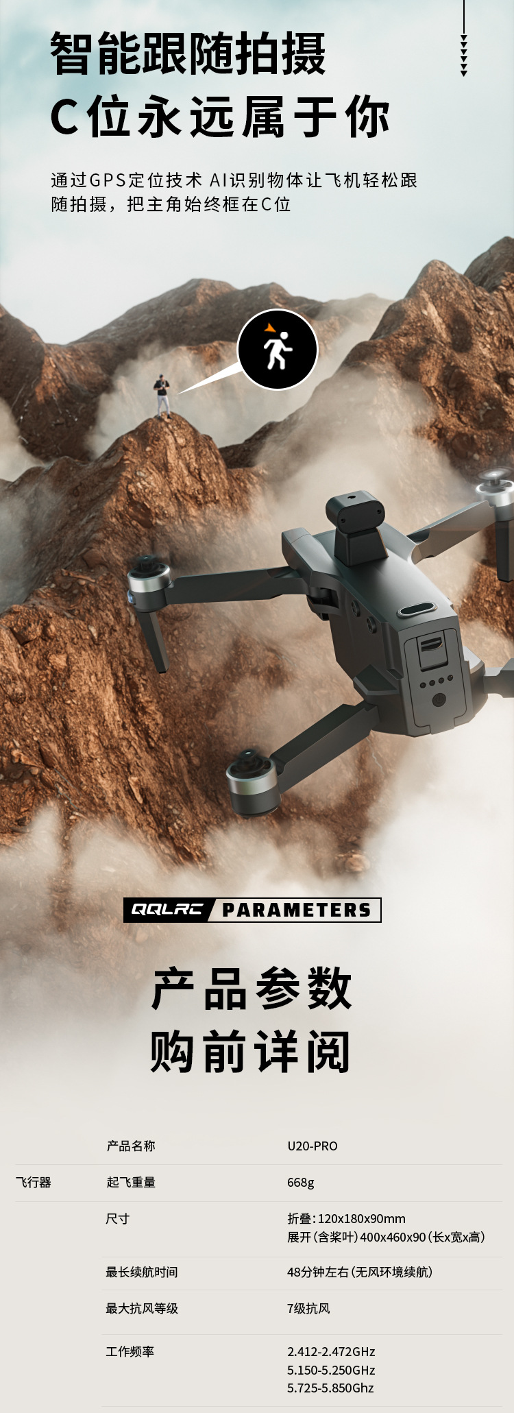 跨境U20Pro无人机折叠高清GPS三轴云台数字图传长续航四轴飞行器