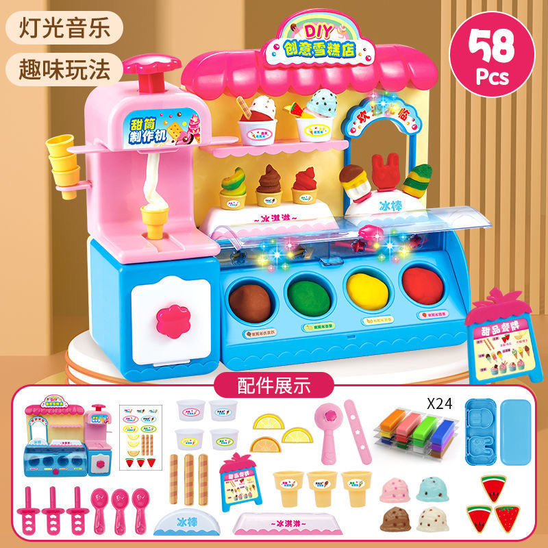 创意DIY雪糕店过家家彩泥橡皮泥模具工具套装儿童冰淇淋玩具女孩