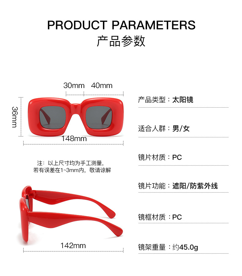 搞怪趣味充气感可爱方形墨镜女ins网红潮人街拍眼镜男个性太阳镜