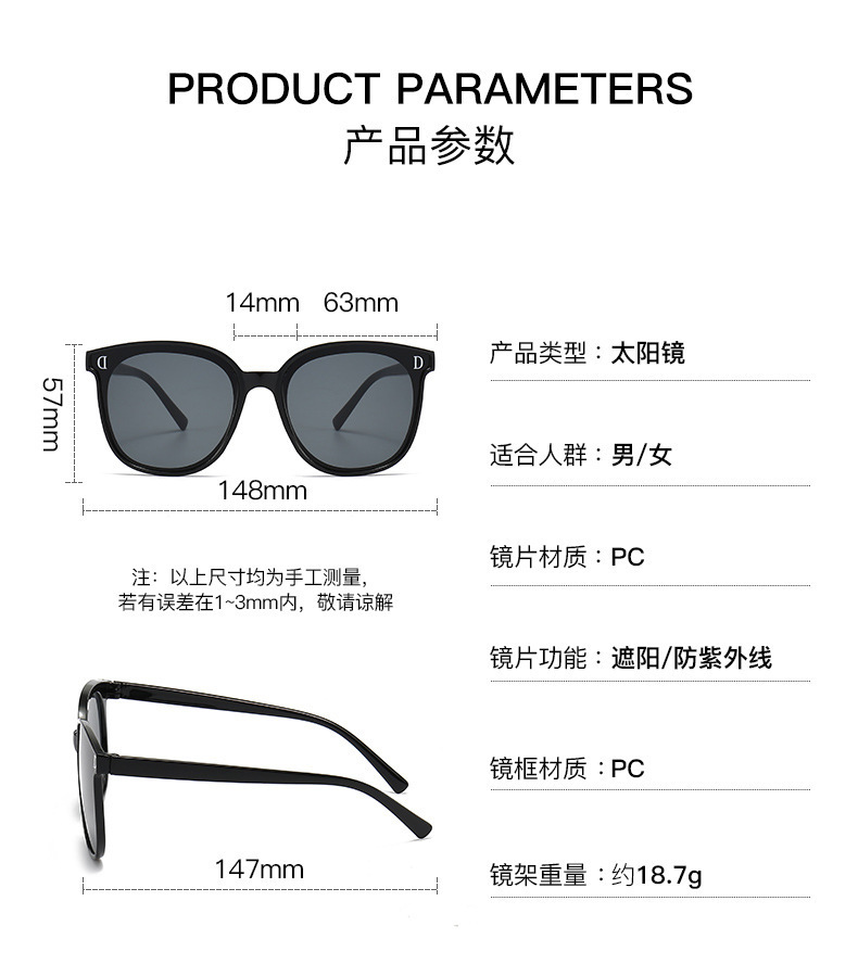 严选gm墨镜女高级感显脸小防紫外线太阳眼镜男2024新款防晒方圆脸