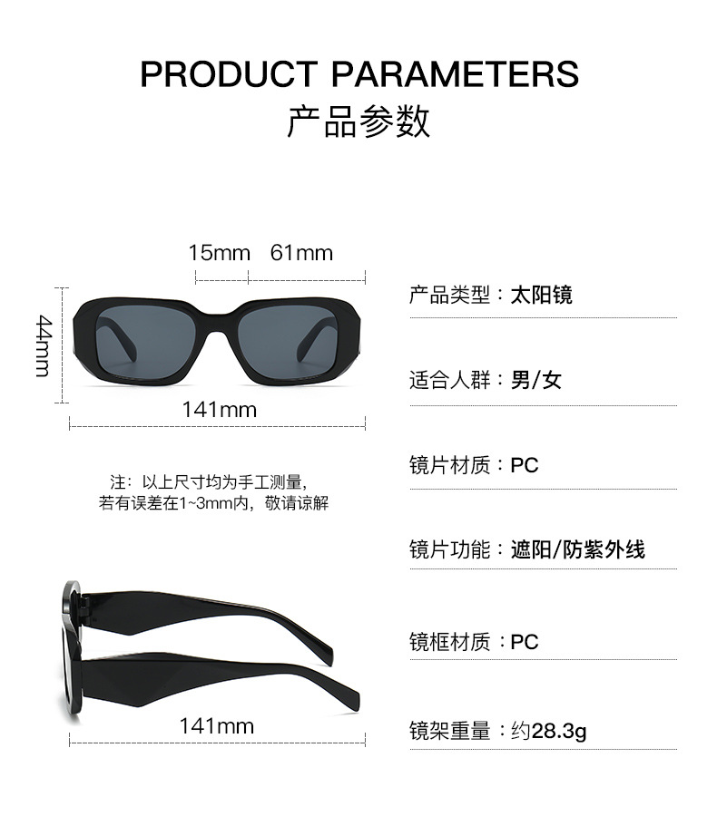 欧美复古方形黑色墨镜潮男宽腿粗边框太阳镜网红辣妹时尚个性眼镜