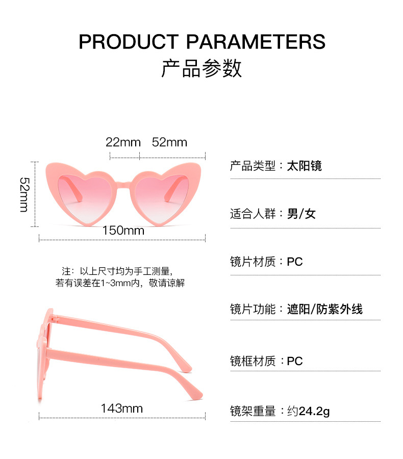 芭比粉墨镜多巴胺彩色爱心太阳镜凹造型y2k桃心玫红色成人眼镜女