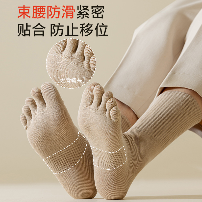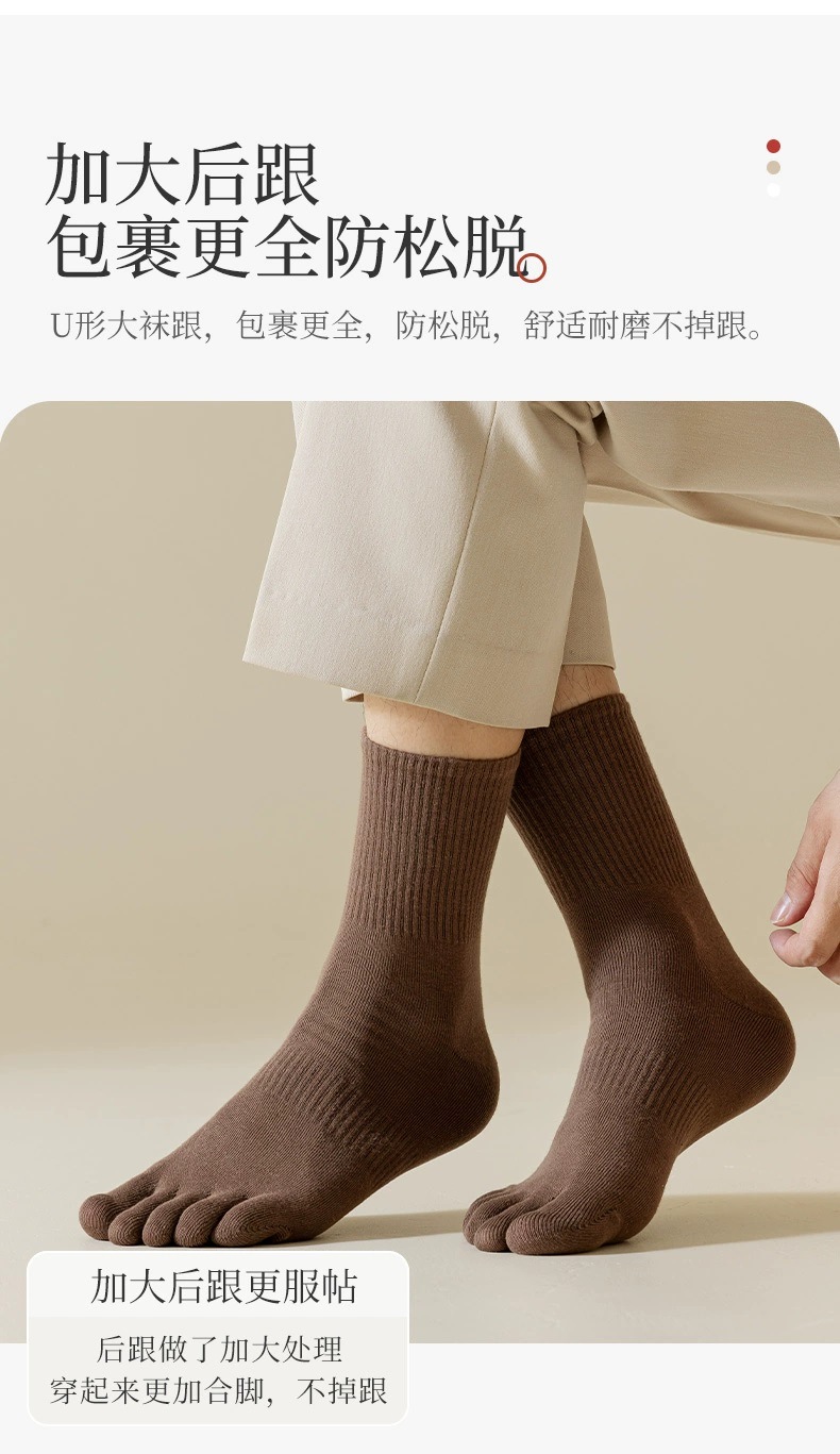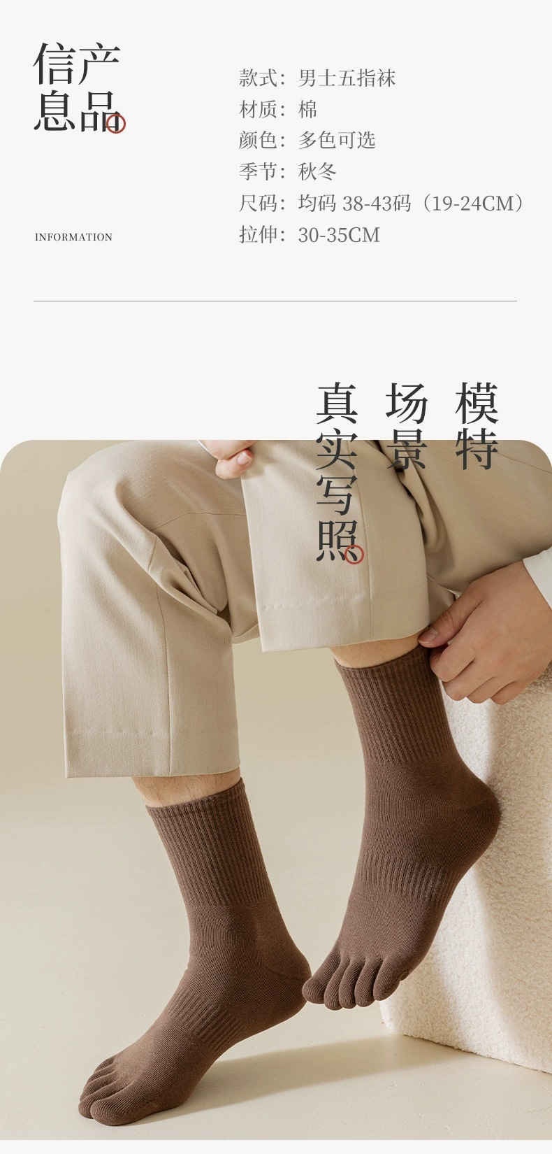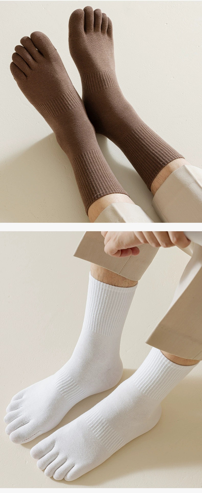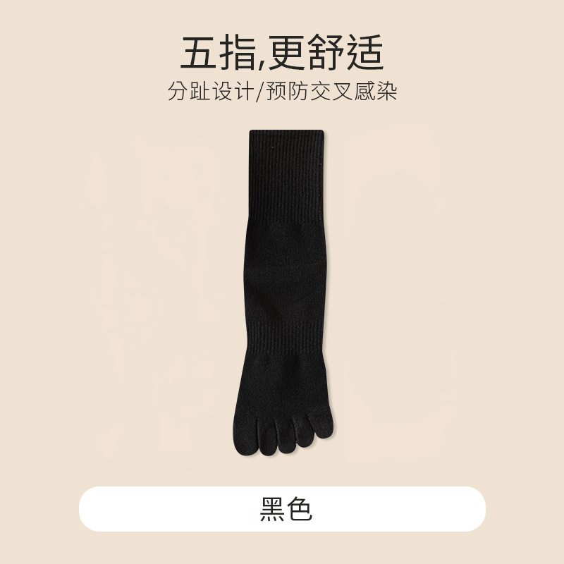 五指袜子男士中筒秋冬季棉袜运动吸汗长袜春秋款青少年长筒分趾袜