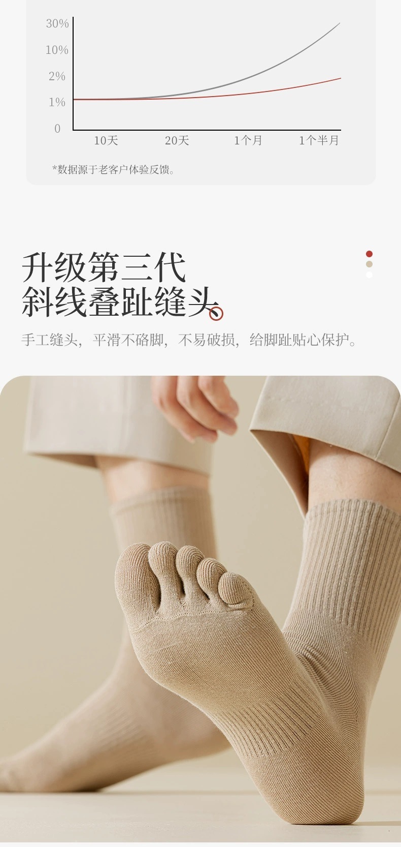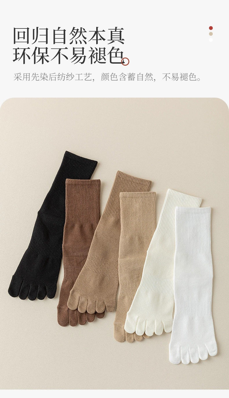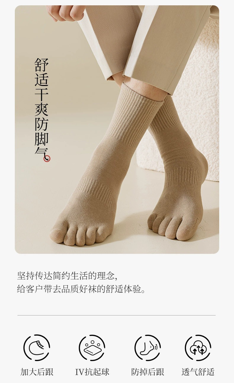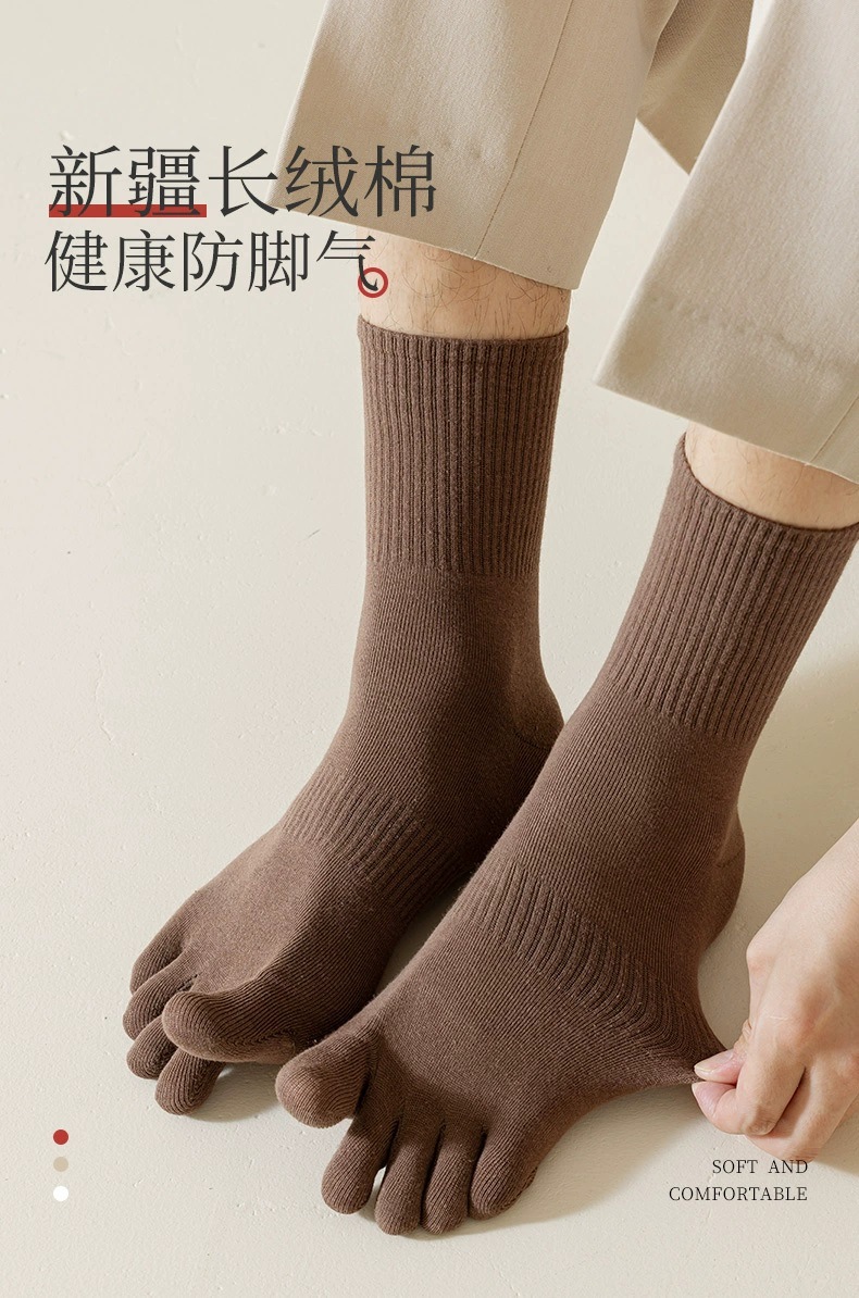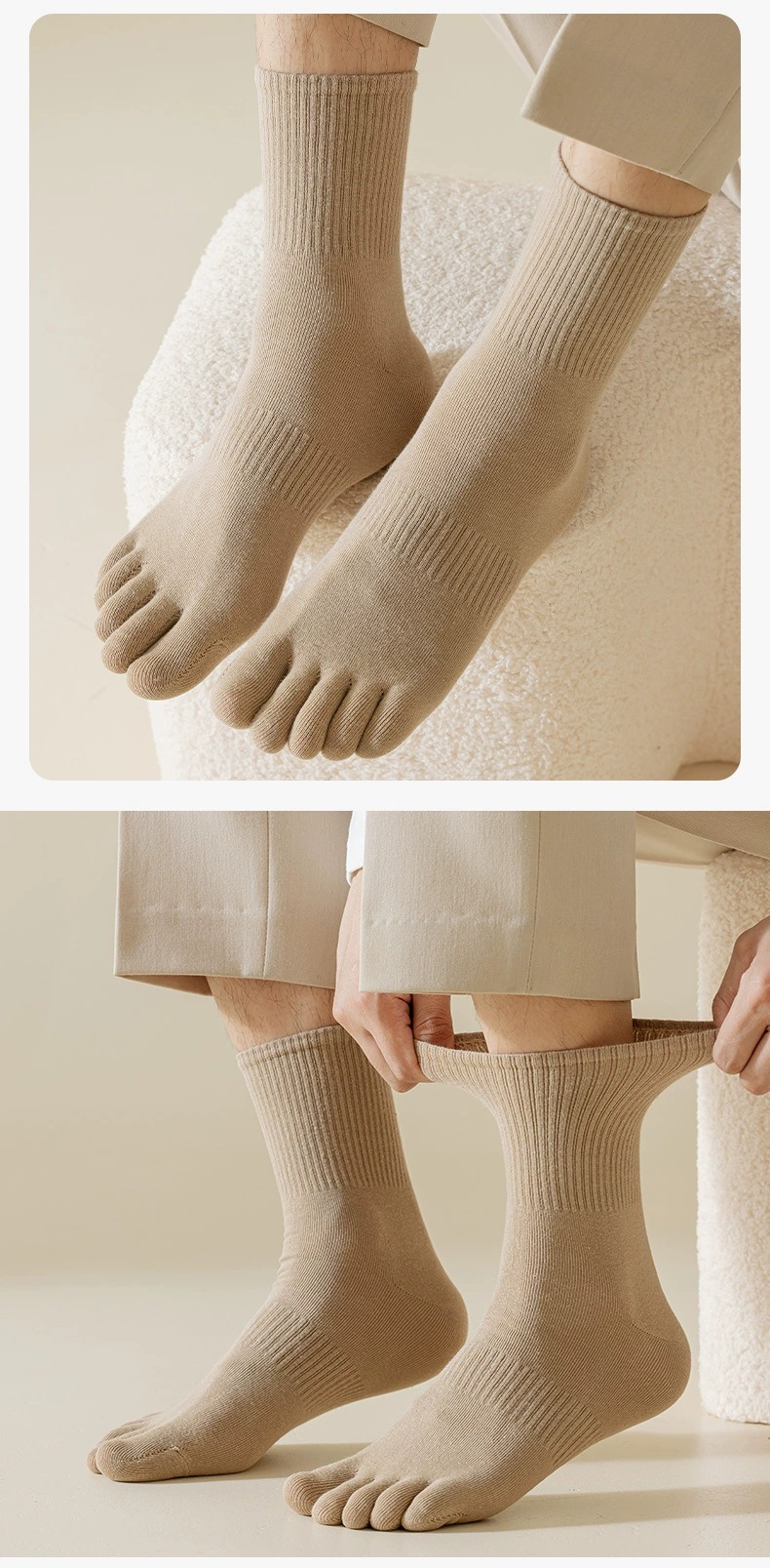 五指袜子男士中筒秋冬季棉袜运动吸汗长袜春秋款青少年长筒分趾袜