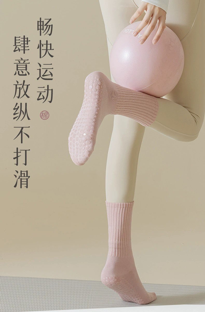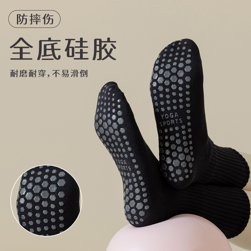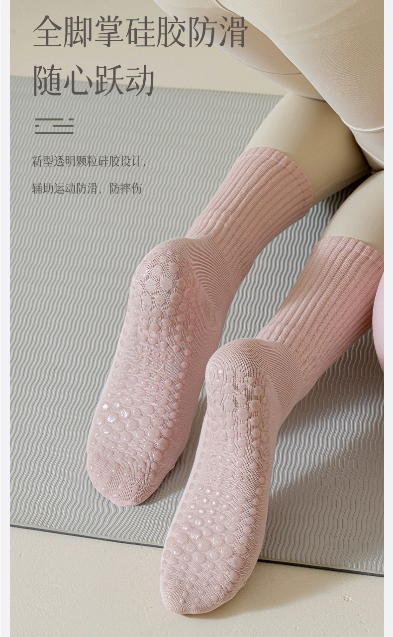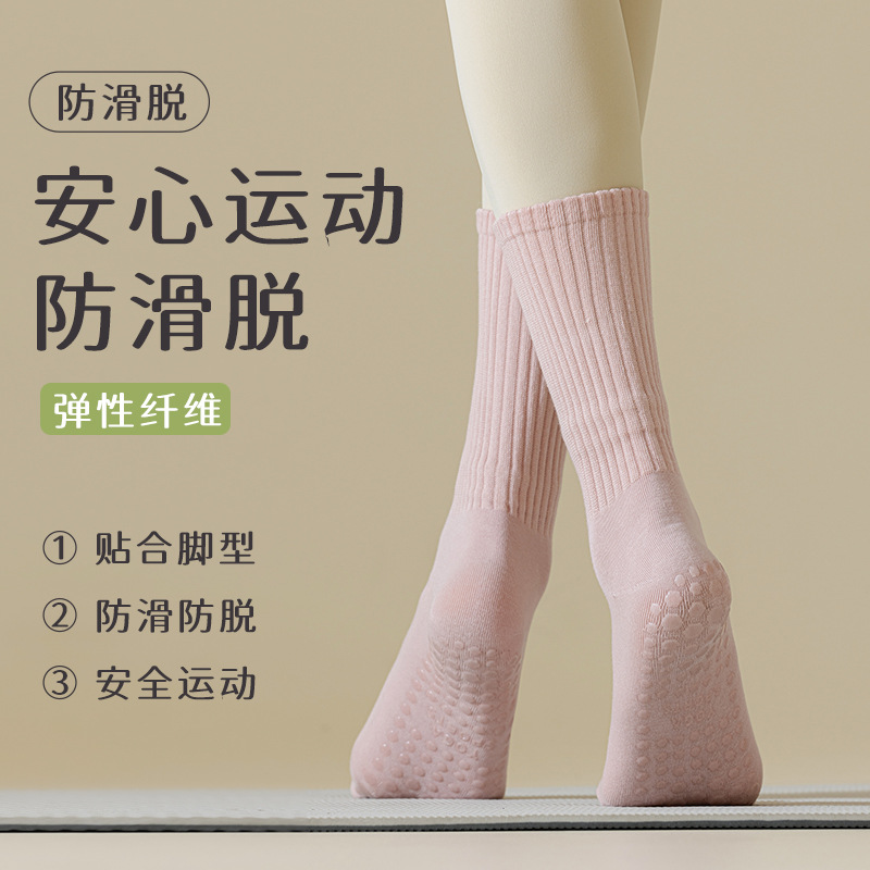 瑜伽袜子女防滑中筒袜专业健身普拉提运动地板长袜配鲨鱼裤的袜子