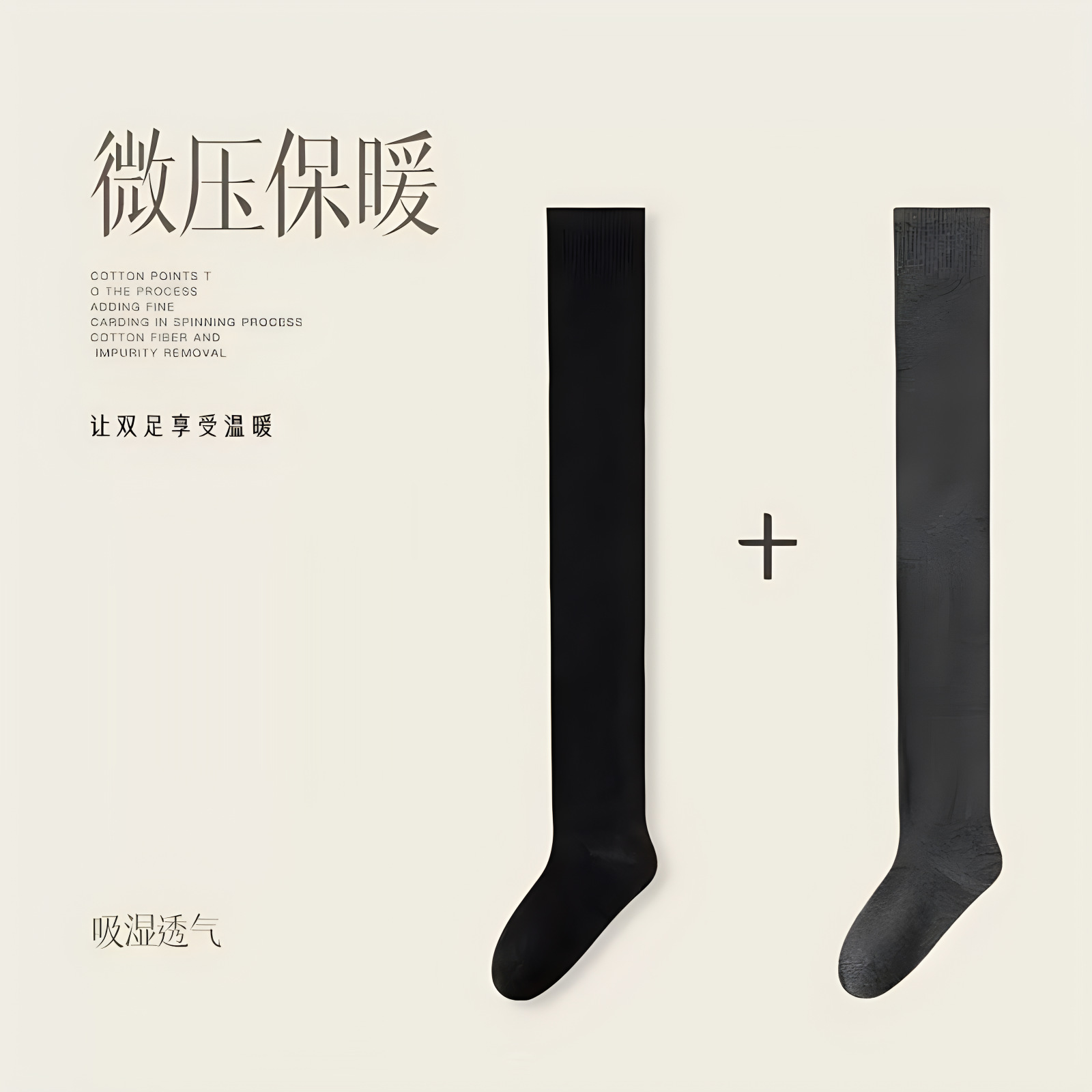 秋冬长筒大腿袜加长过膝袜高筒加绒加厚毛圈袜女士微压显瘦JK袜子