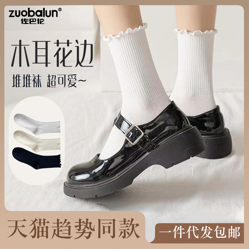木耳边花边袜子女中筒袜ins潮夏季薄款jk日系吸汗防臭女袜子批发