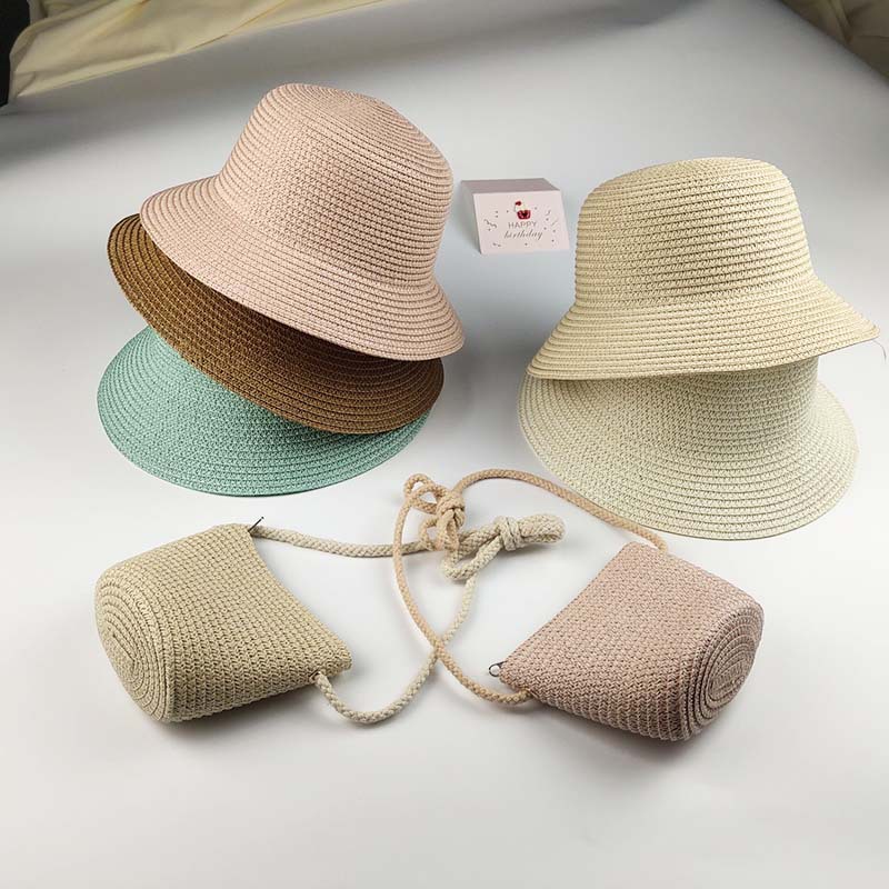 夏季儿童草编纸草包遮阳帽子宝宝迷你沙滩包可爱零钱小挎包帽批发