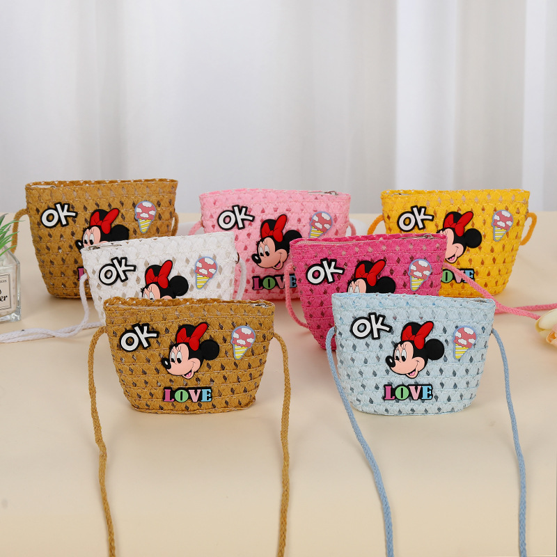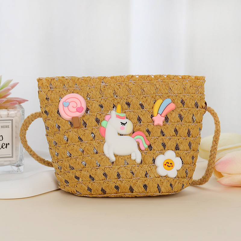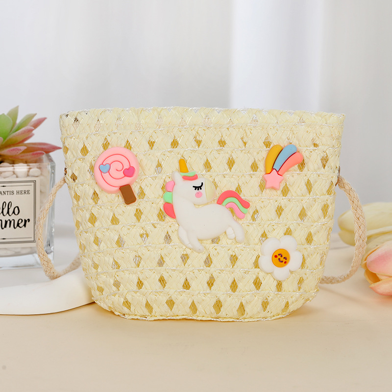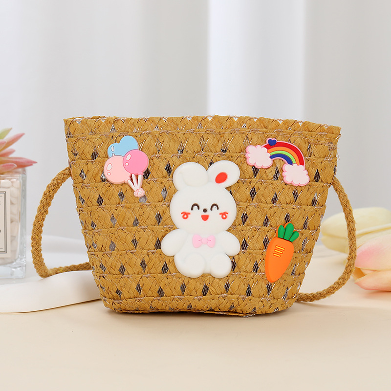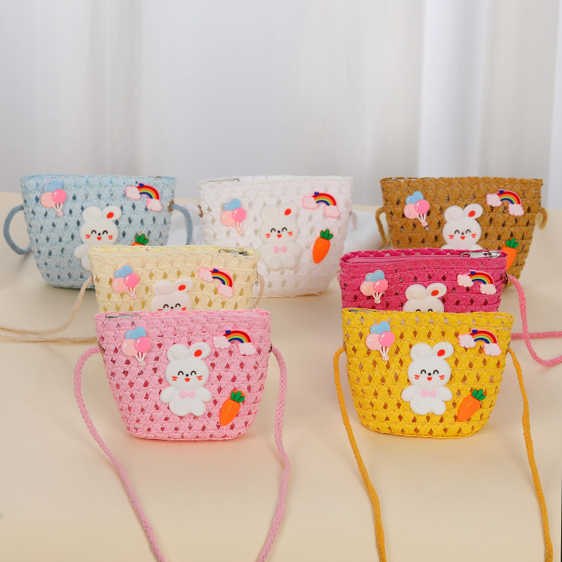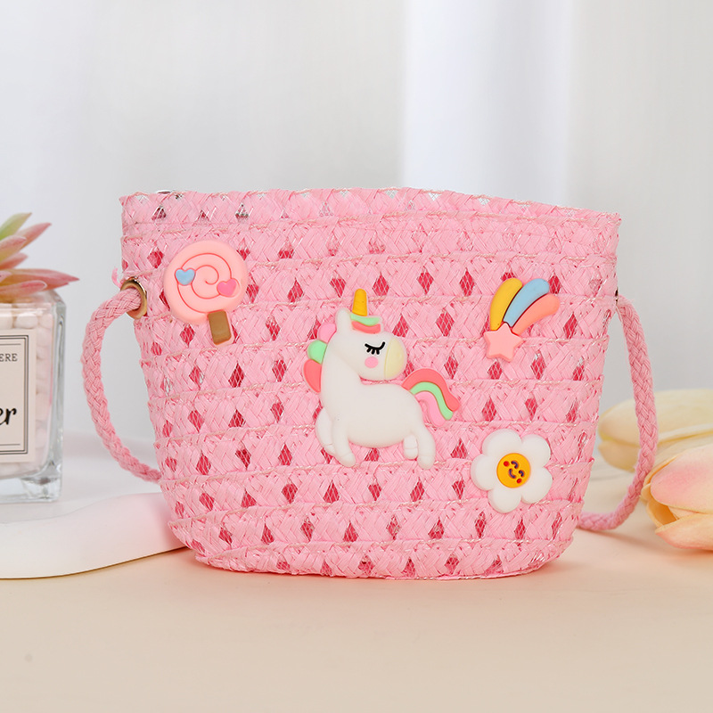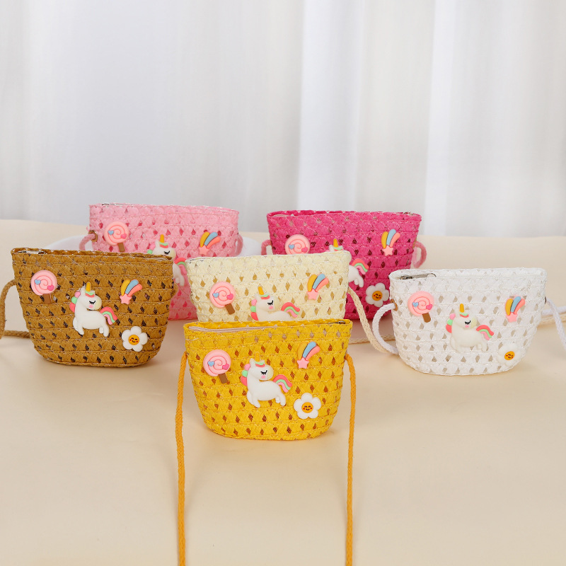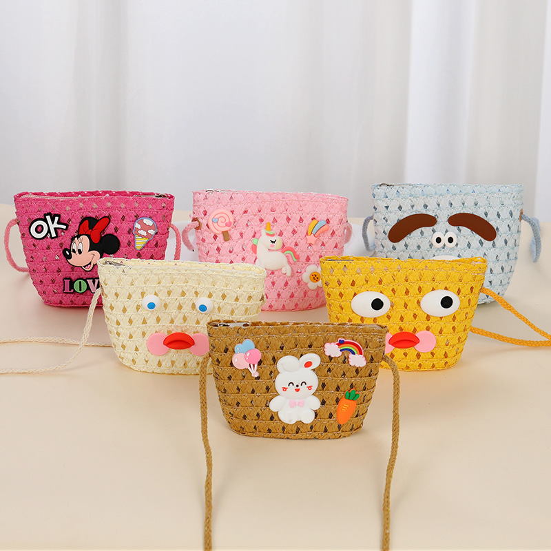 夏天拉菲编织草编包儿童包包女可爱2024新款小女孩斜挎包海边度假