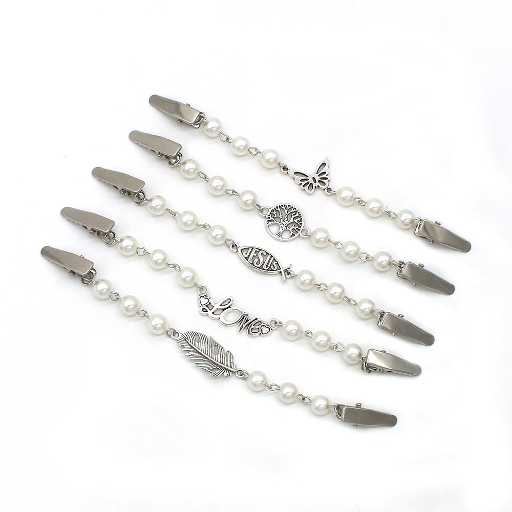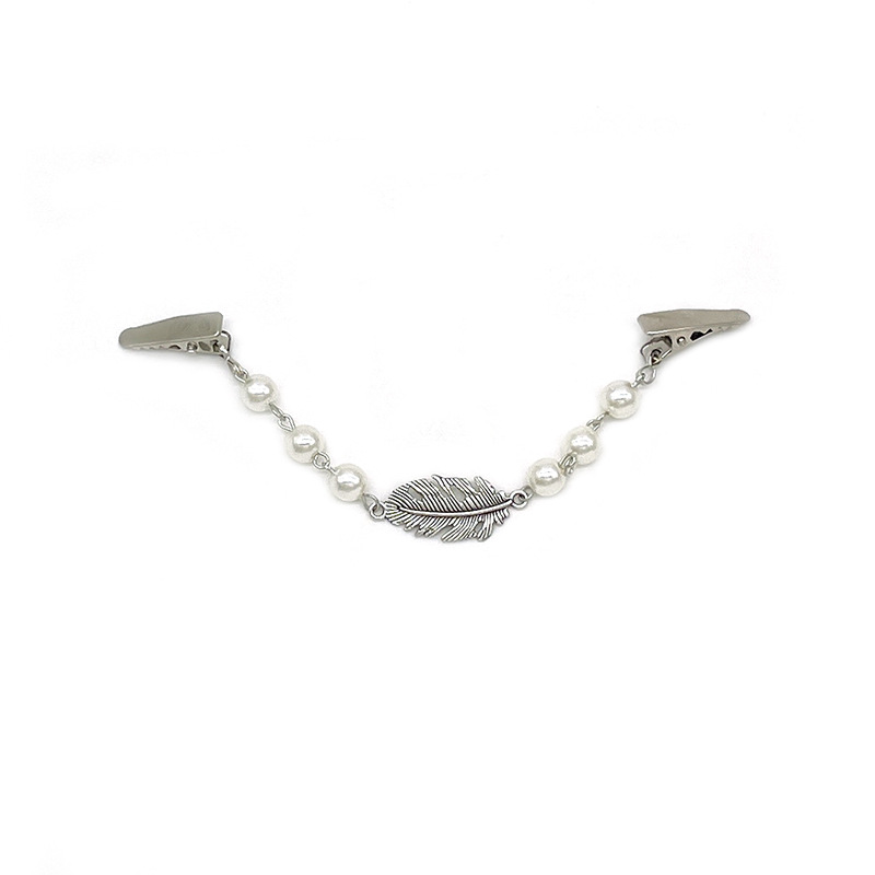 跨境时尚珍珠毛衣链羽毛字母吊坠披肩夹女防走光衣领夹丝巾扣配饰