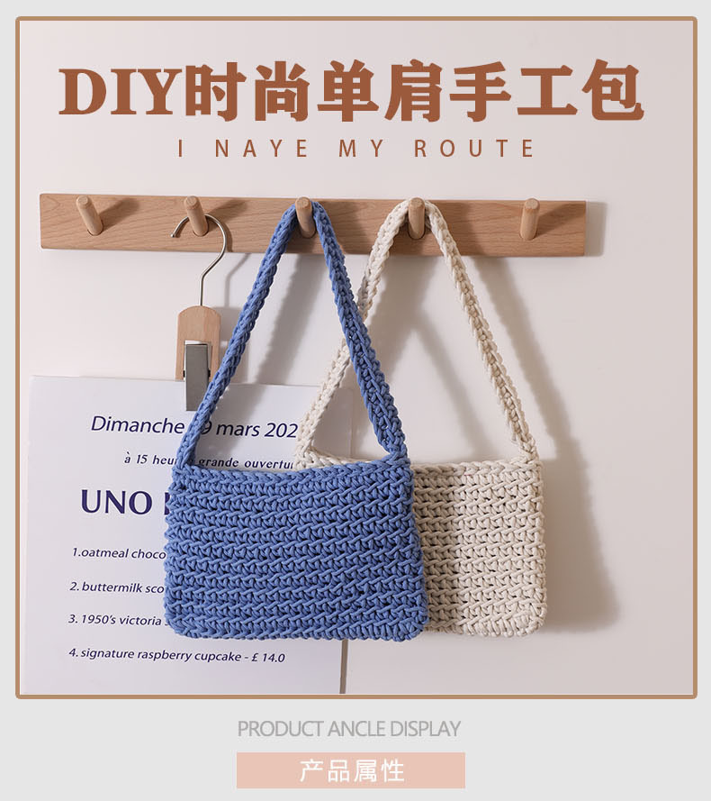 百搭单肩棉线编织包新款小清新方形腋下包草编包纯色通勤手提包女