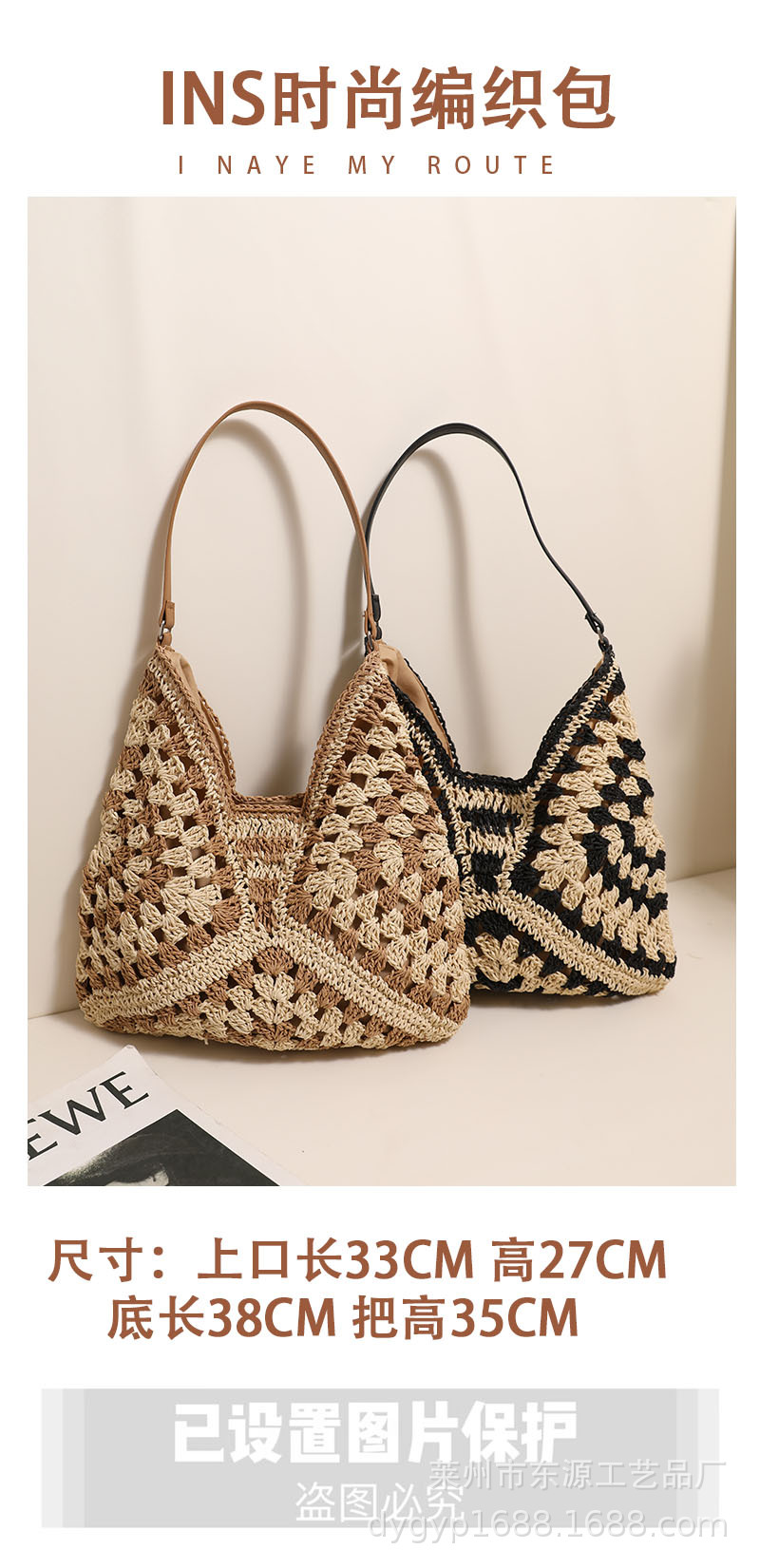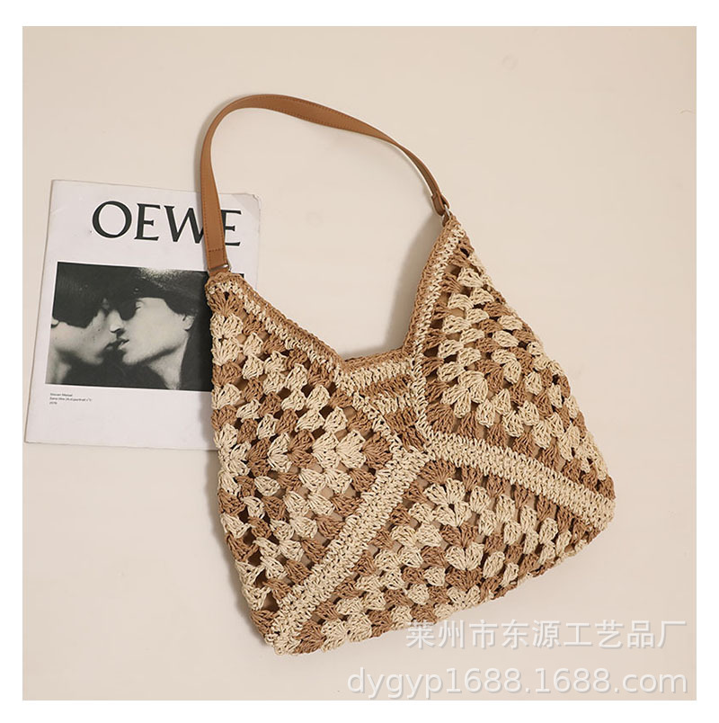 厂家批发草编包 镂空花朵大三角撞色编织包度假沙滩包百搭单肩包