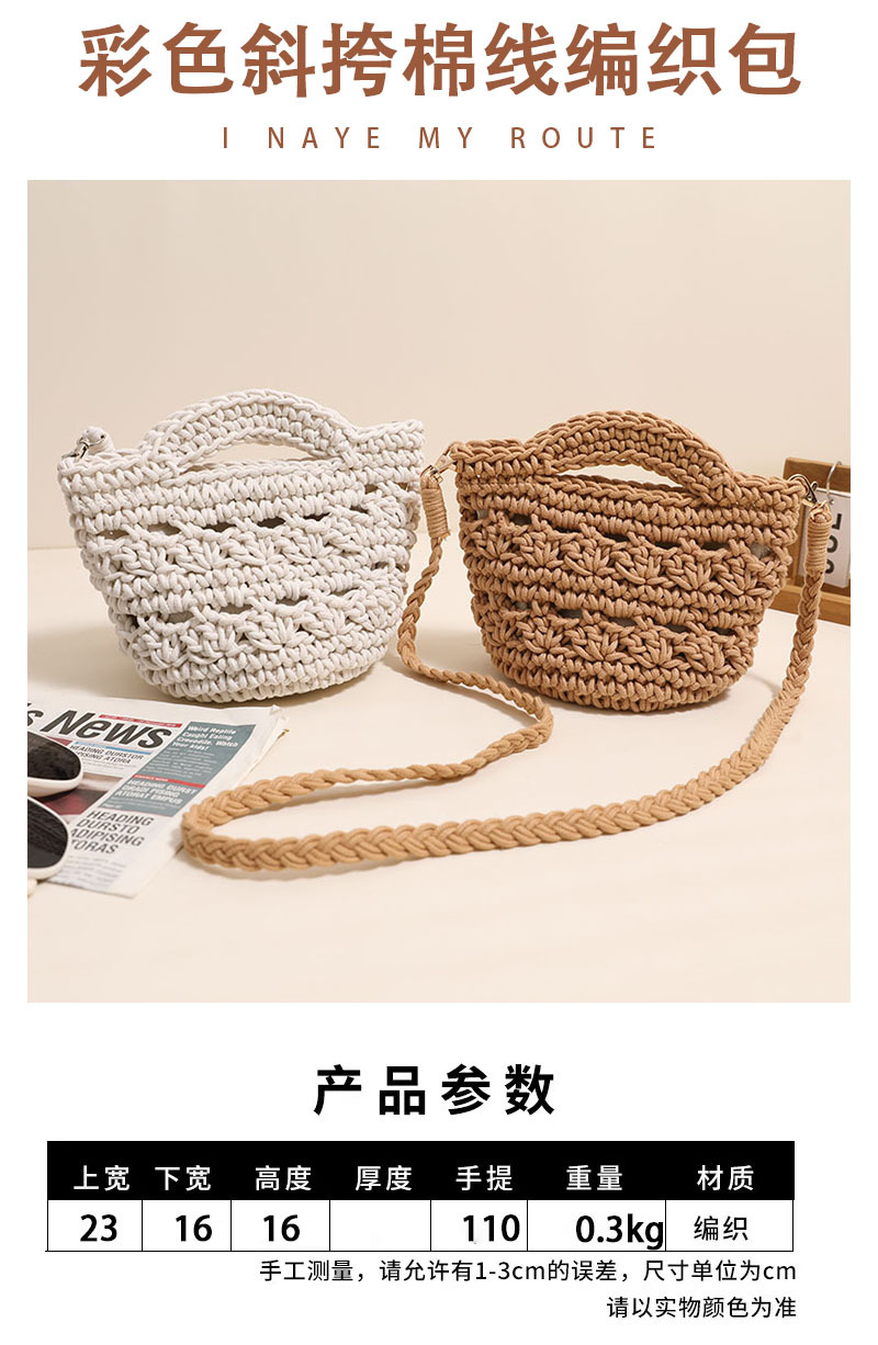 跨境热卖斜挎棉线编织包新款百搭镂空草编包度假沙滩包小清新女包
