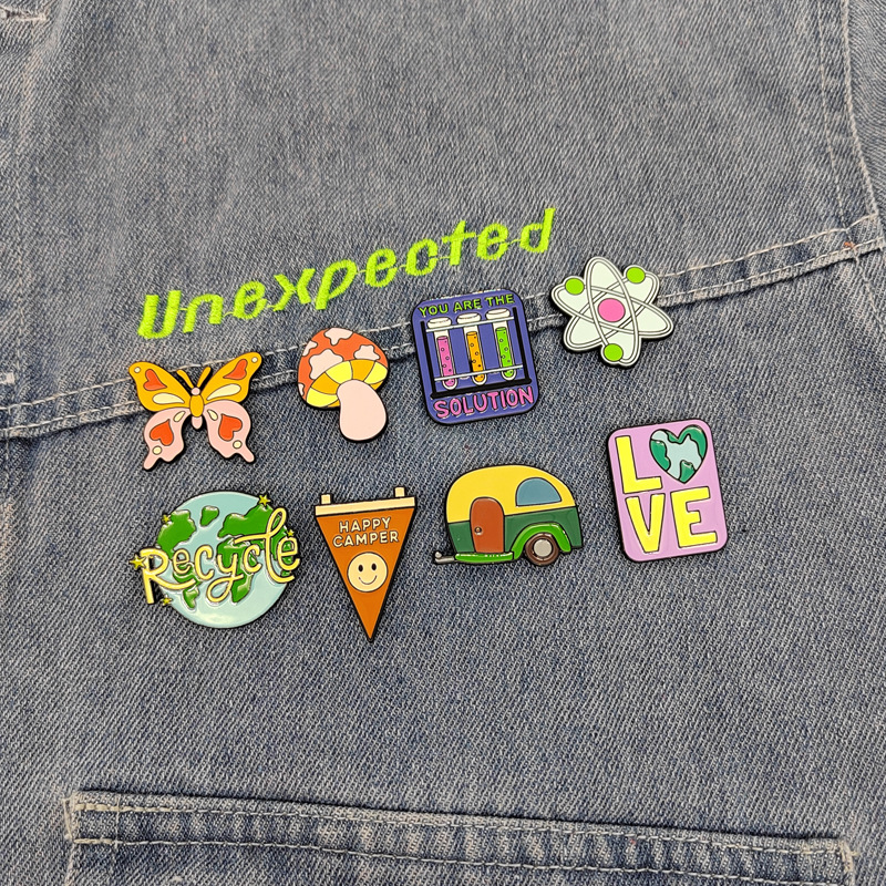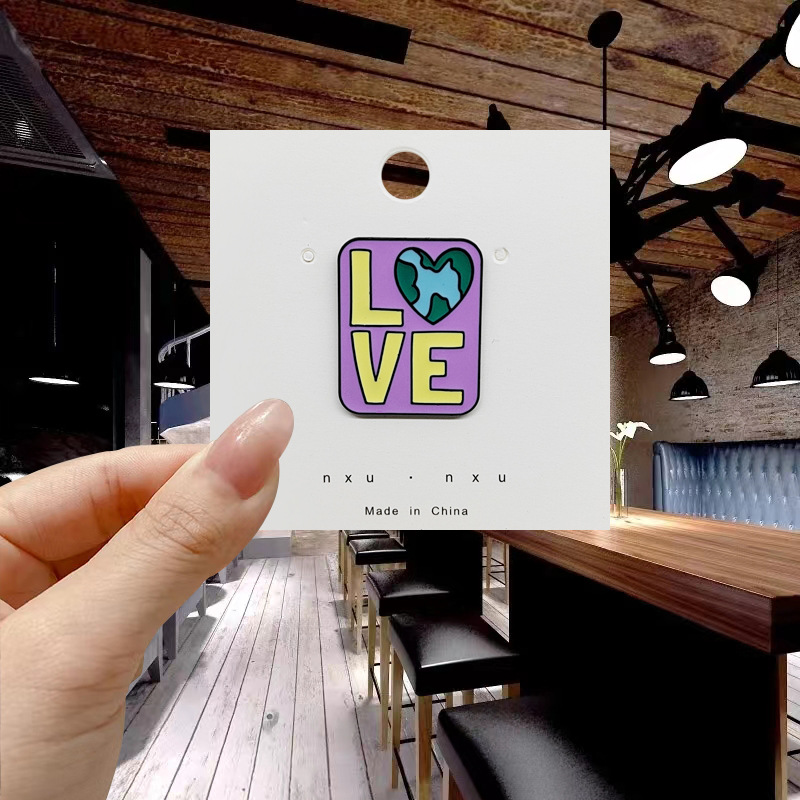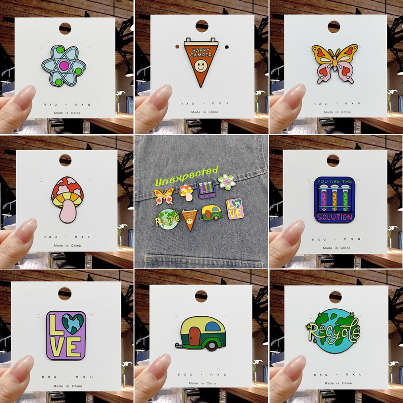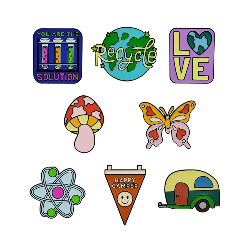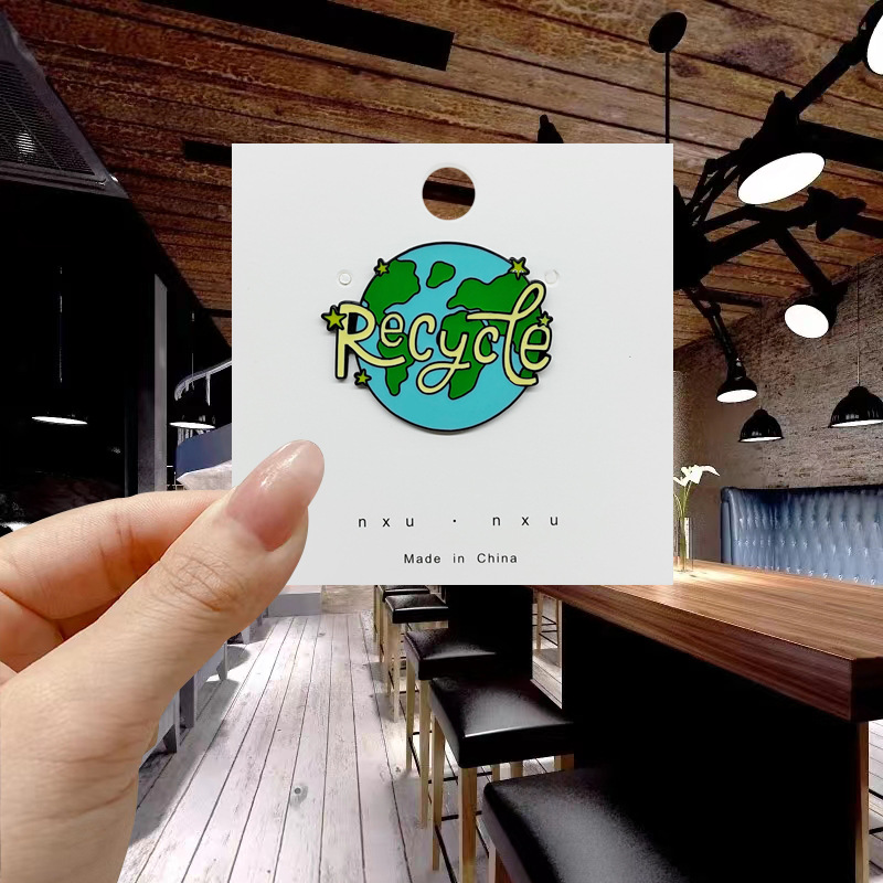 跨境欧美爱护地球胸针绿色圆形环保金属徽章包包衣服卡通别针批发