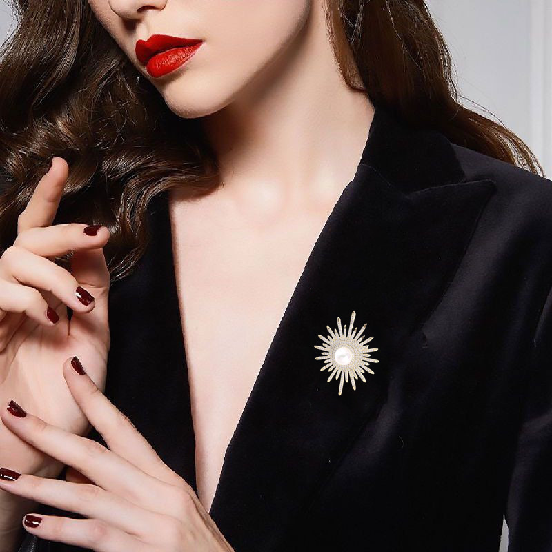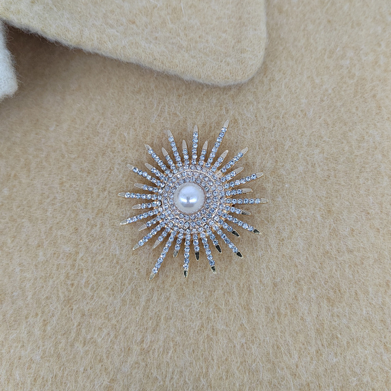 珍珠胸针女西装胸花太阳花别针满钻丝巾扣防走光扣针固定衣服插针