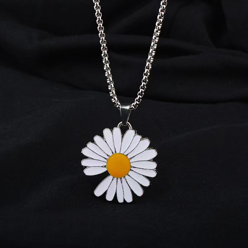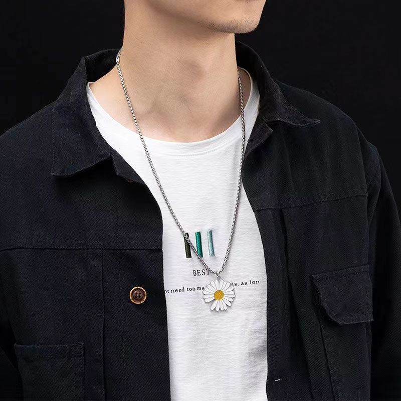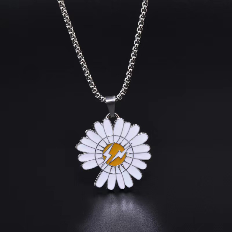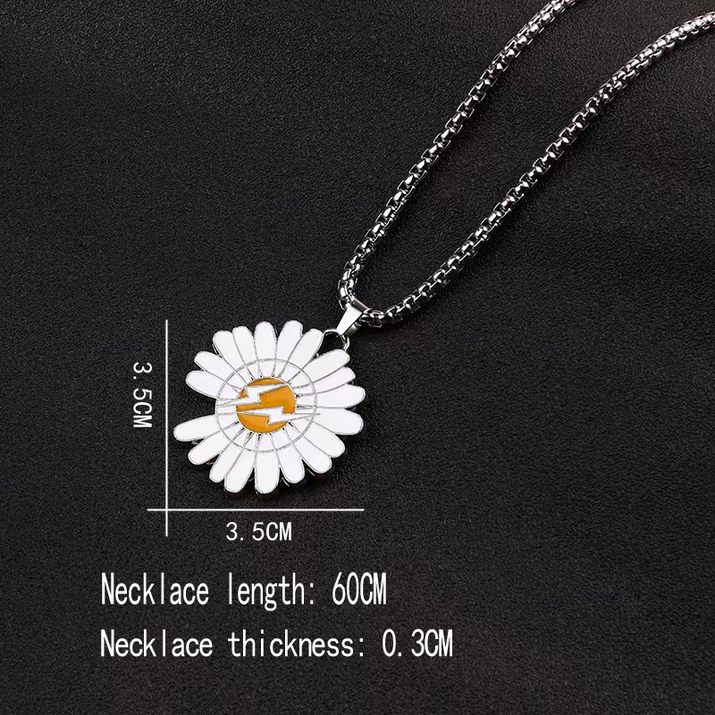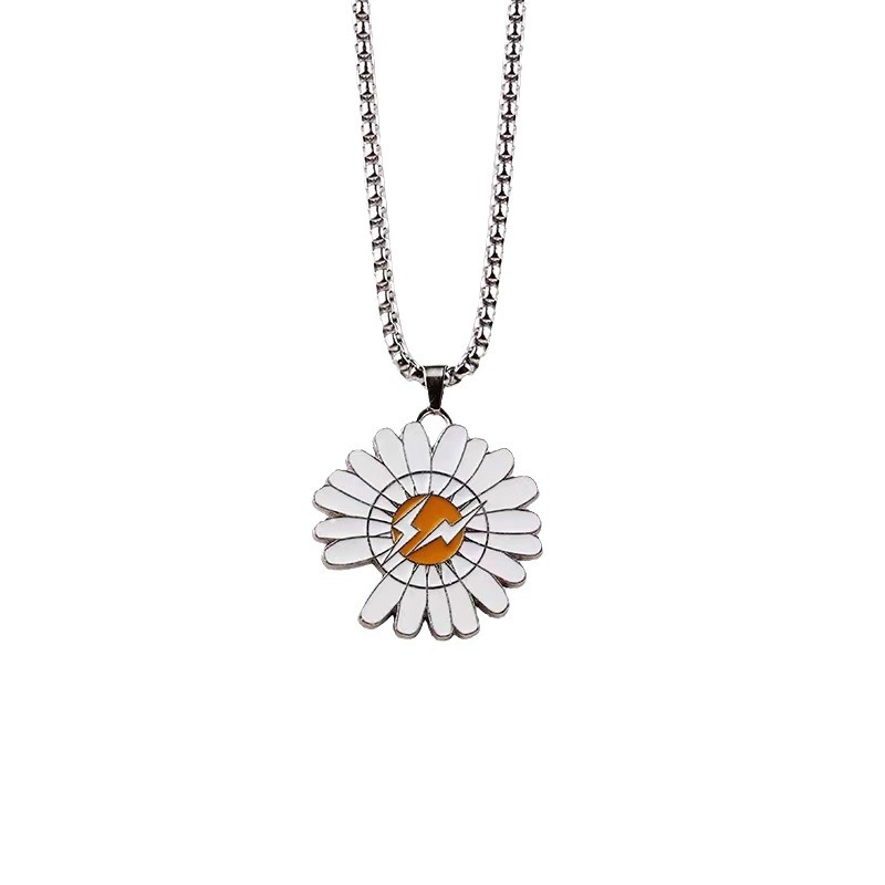 网红同款缺口雏菊吊坠项链ins潮男女嘻哈蹦迪钛钢链合金吊坠项链