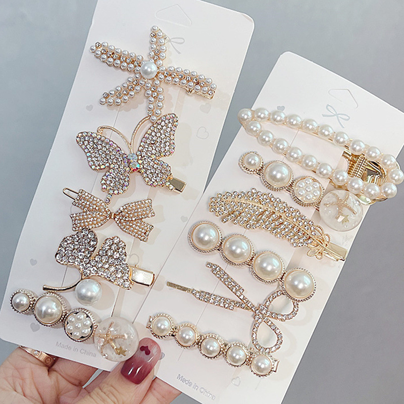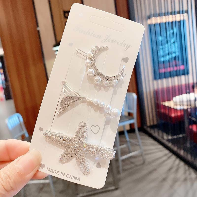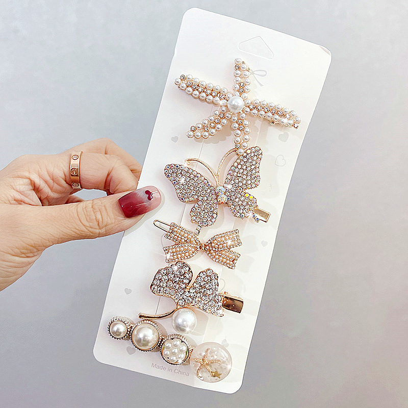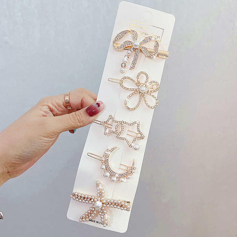 韩版ins抖音星辰大海蝴蝶结套装时尚简约海星发卡边夹刘海夹5件套