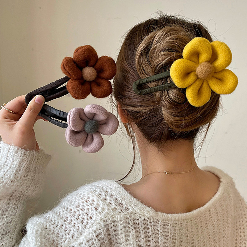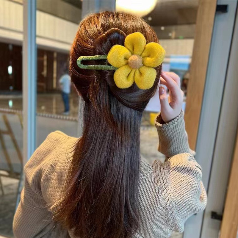2022新气质秋冬大号花朵发夹女后脑勺盘发抓夹高端款森系夹子头饰