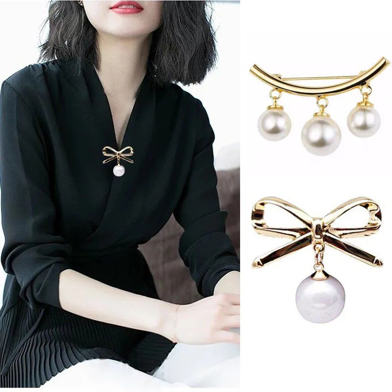 别针高亮珍珠防走光胸针防走光镶钻水钻胸花蝴蝶结brooch服装衣饰