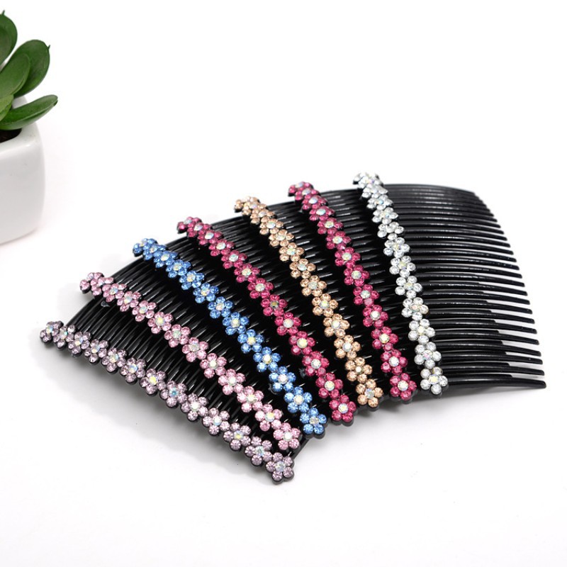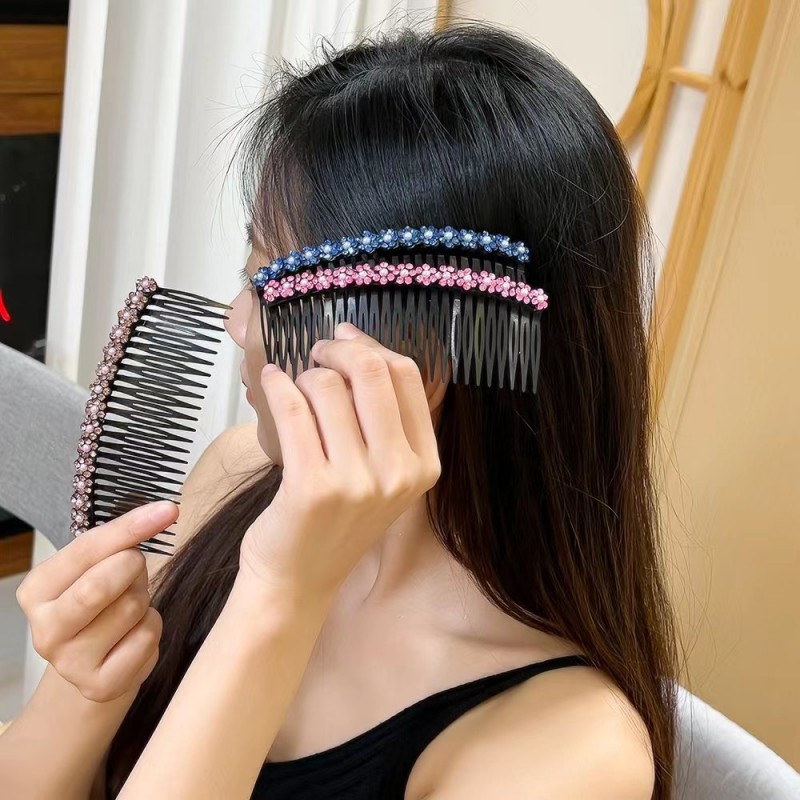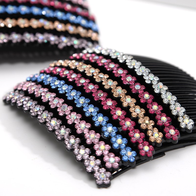 抖音网红同款水晶发梳插头饰防滑简约顶夹刘海倒插发卡女碎发夹子