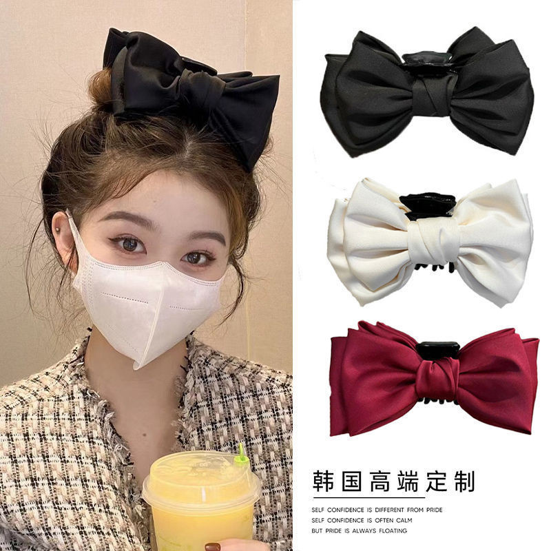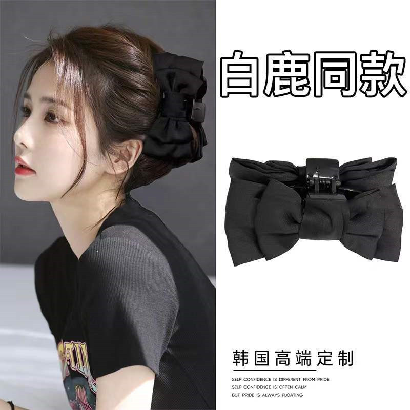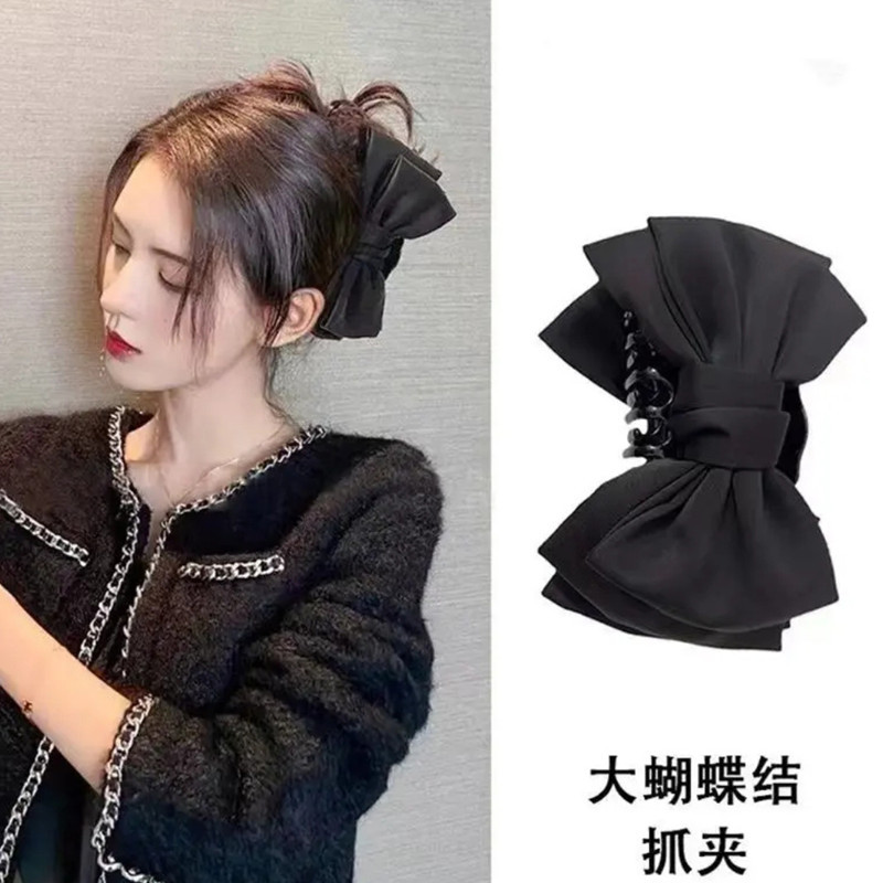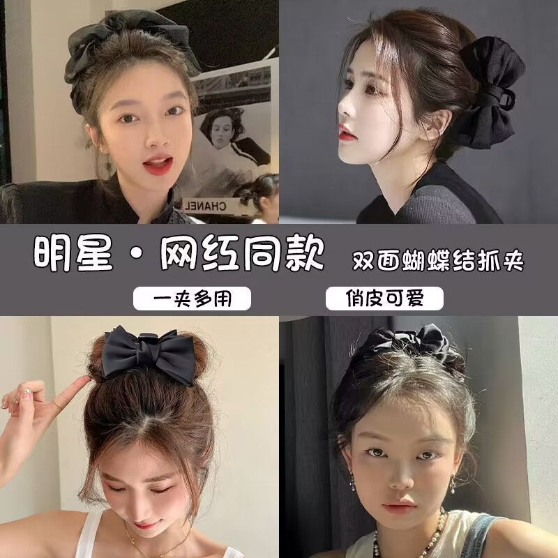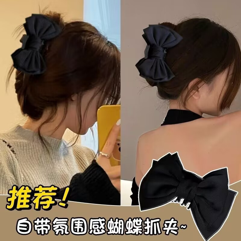 2023抖音同款在逃公主缎面黑色蝴蝶结抓夹后脑勺鲨鱼夹女孩发饰