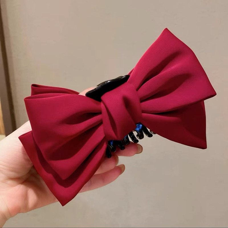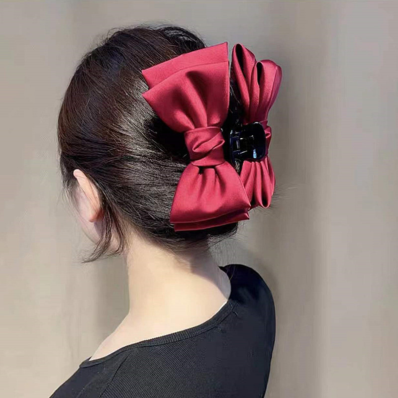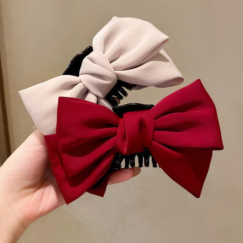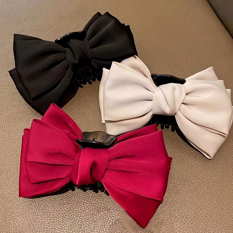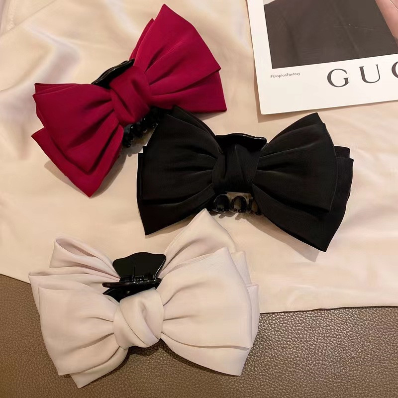 2023抖音同款在逃公主缎面黑色蝴蝶结抓夹后脑勺鲨鱼夹女孩发饰