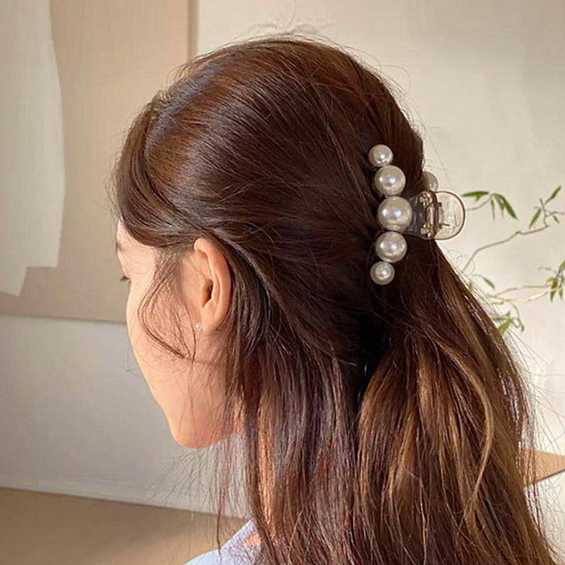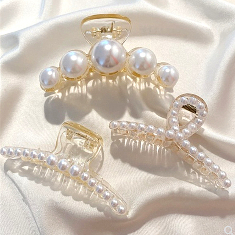 韩国ins珍珠发夹后脑勺大号头发夹子头饰优雅气质发抓鲨鱼夹发卡