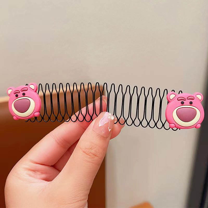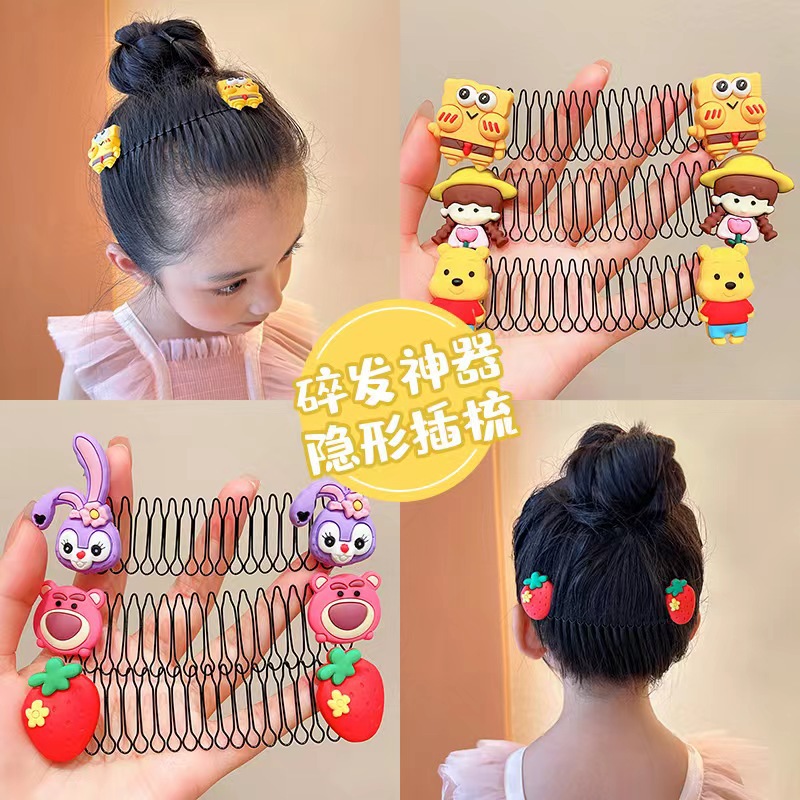 儿童卡通草莓熊隐形后脑勺盘发神器新款可爱碎发发梳网红拉拉插梳