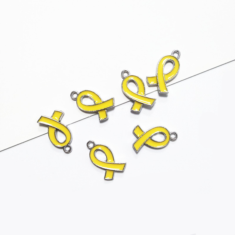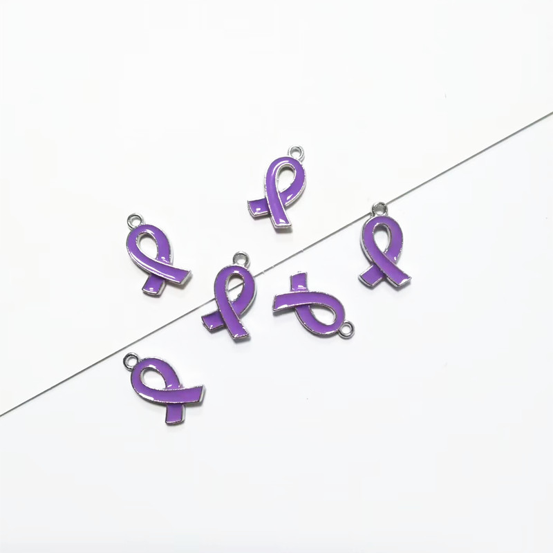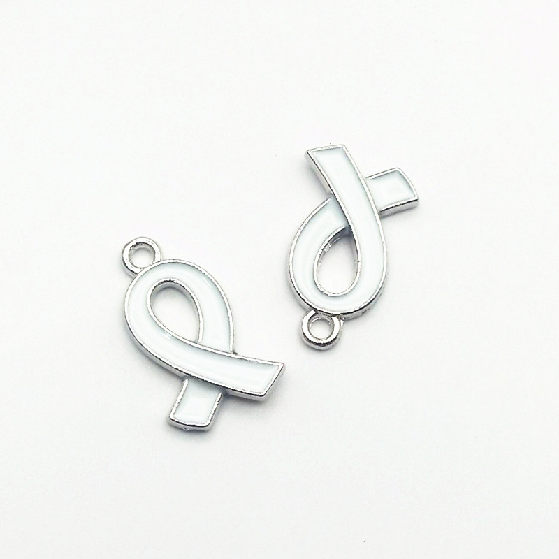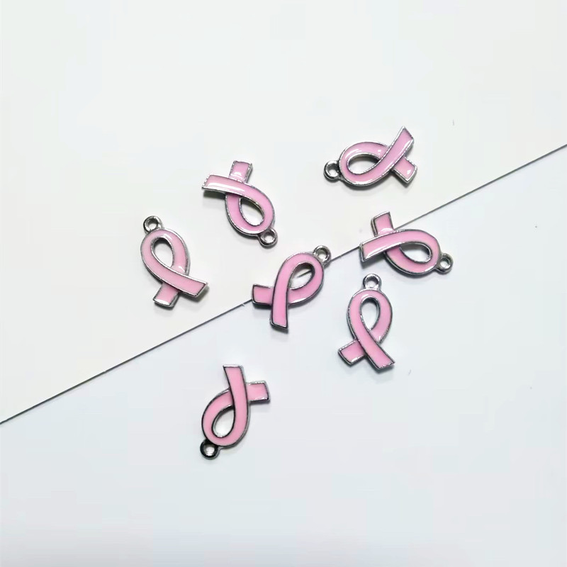 粉红丝带爱心挂件批发合金滴油ribbon红飘带吊坠 DIY项链吊坠饰品
