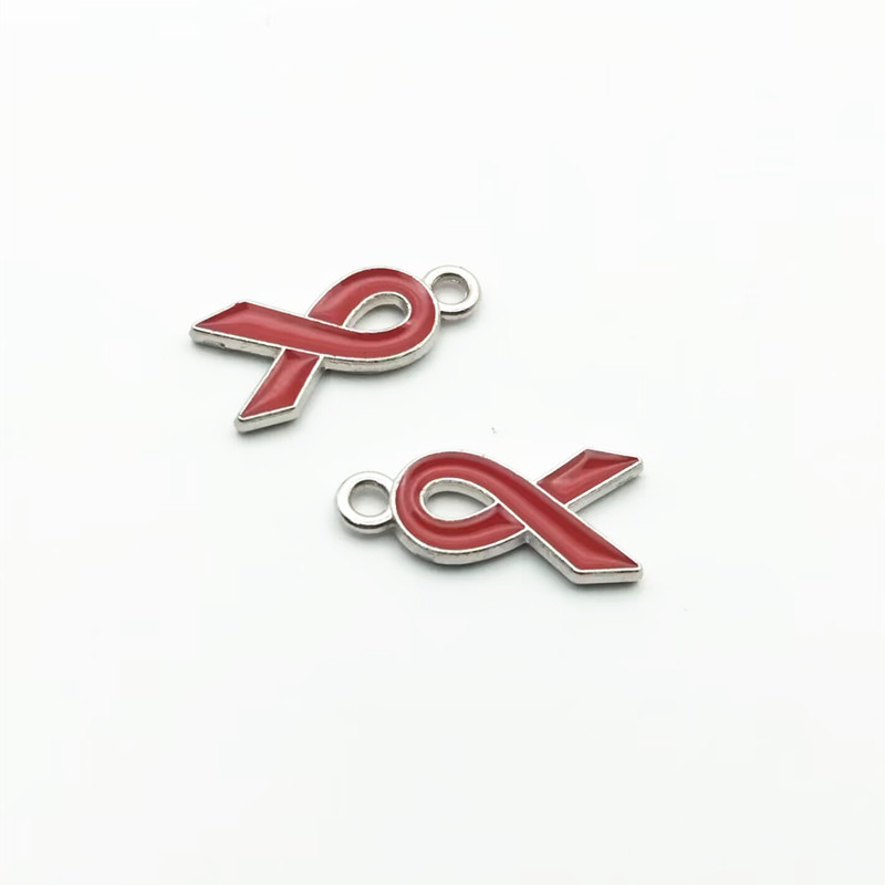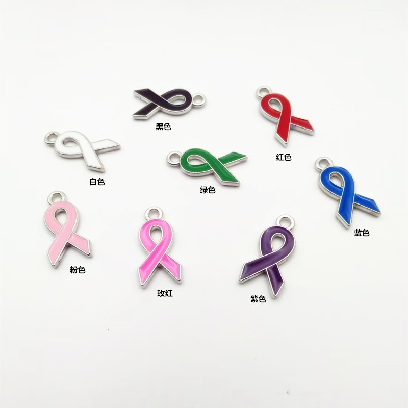 跨境爱心丝带蝴蝶结吊坠批发 DIY手链项链饰品配件合金滴油坠子