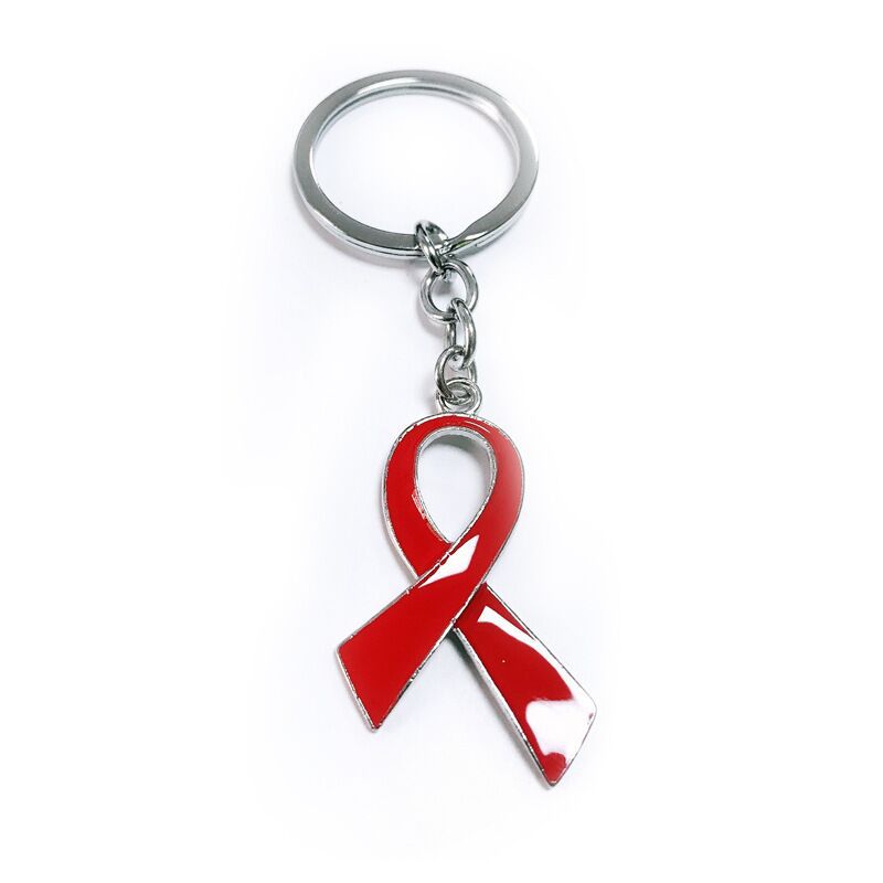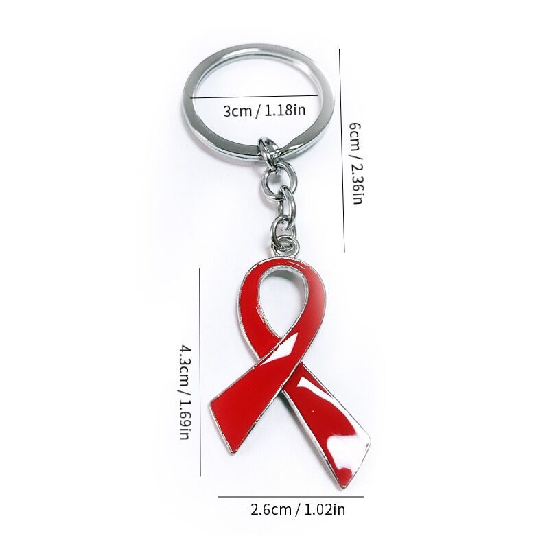 跨境专供艾滋宣传日纪念标识红色丝带蝴蝶结钥匙扣环饰品挂件批发