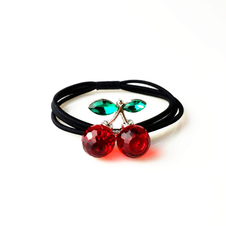 森女系红色樱桃水钻水晶水果发圈韩国发绳小清新个性头绳皮筋发饰