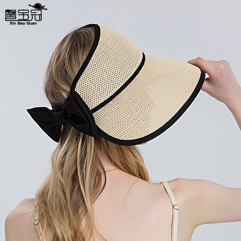 8084草帽韩版空顶帽女夏防晒遮阳帽户外太阳帽可折叠大檐沙滩帽