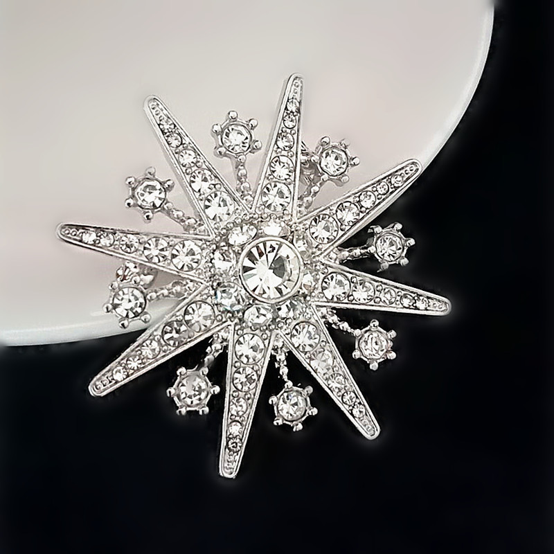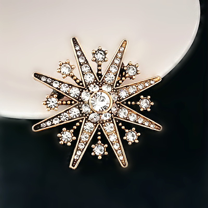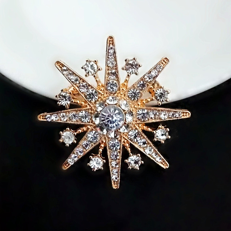 阿玛施哥弟胸针批发 合金满钻雪花八芒星胸花服装配饰品西装别针