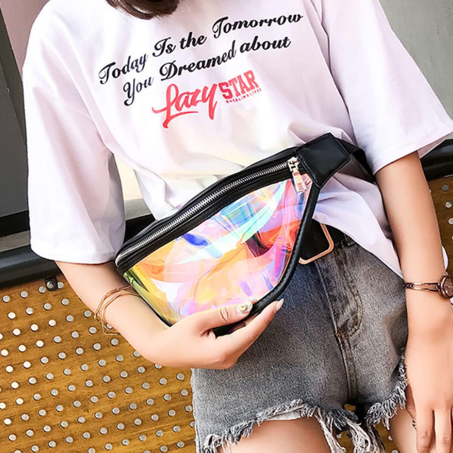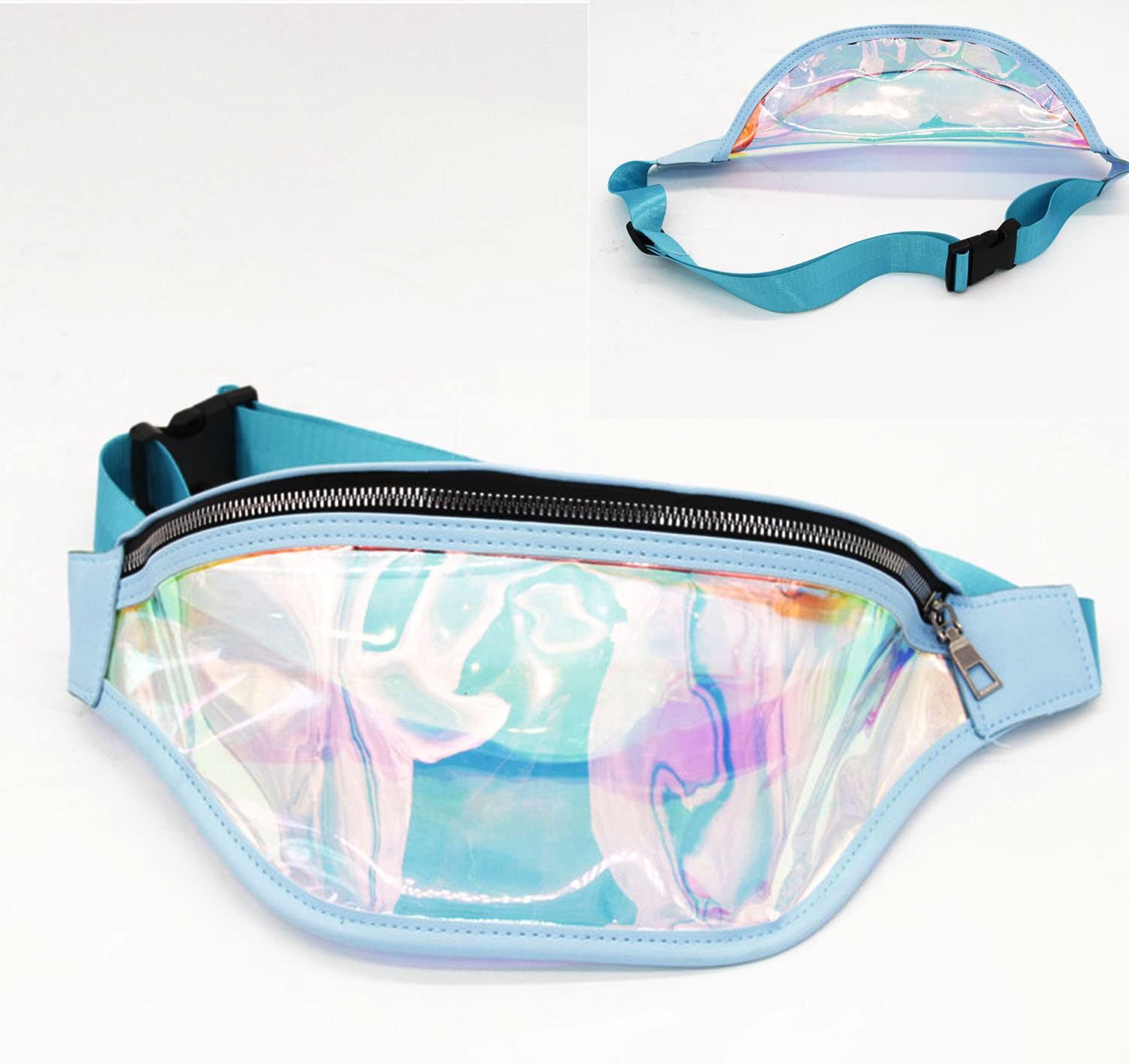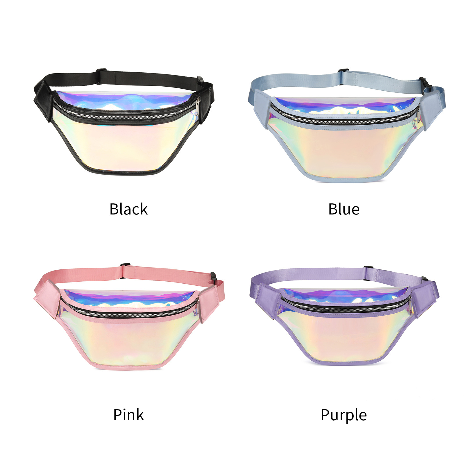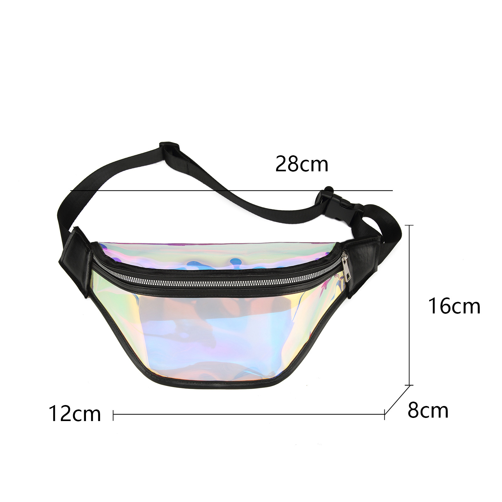 亚马逊炫彩TPU腰包镭射女士胸包户外跑步防水斜挎包透明PVC挂包批