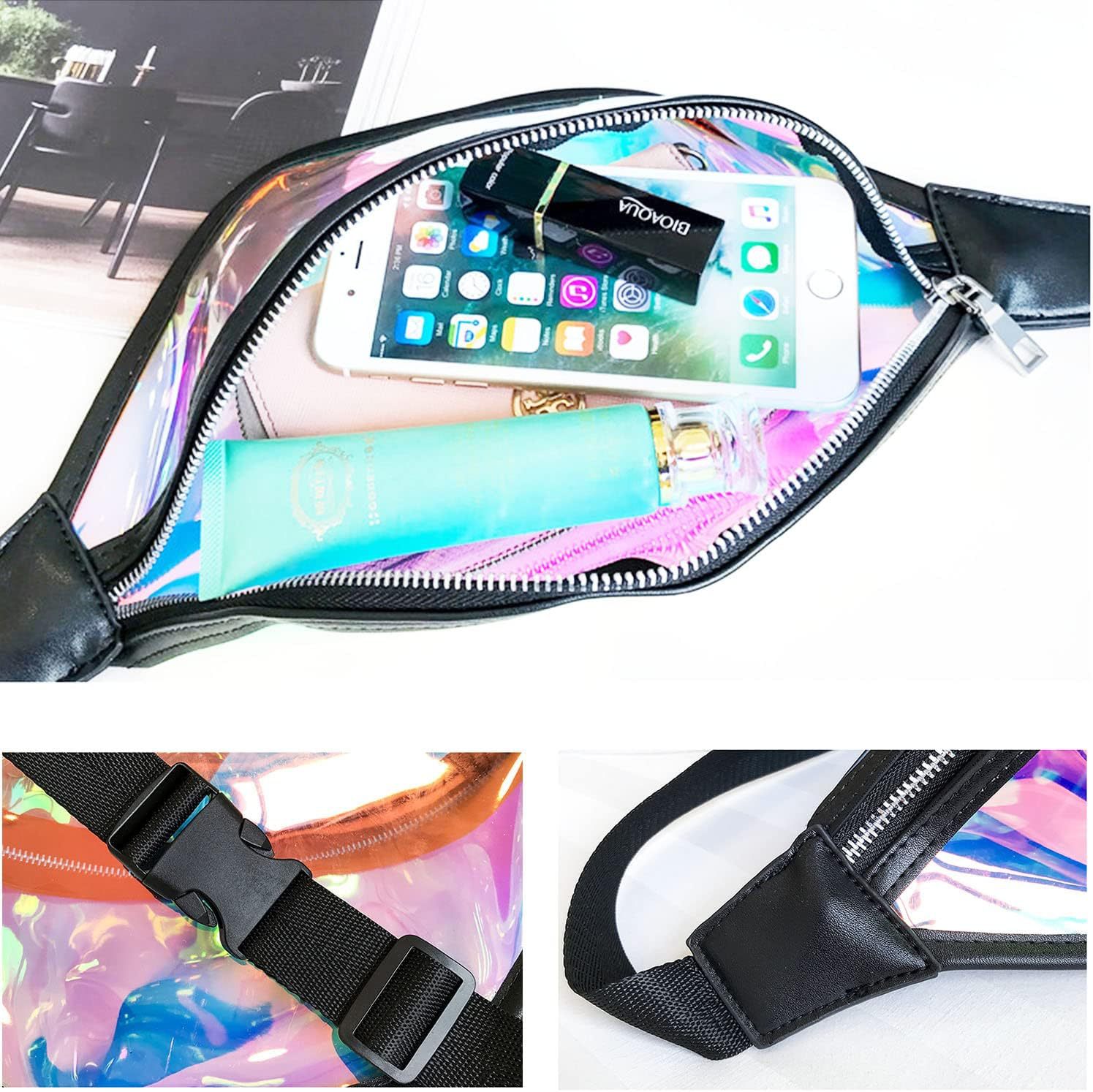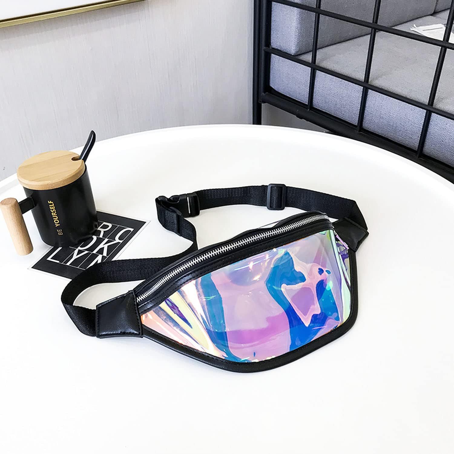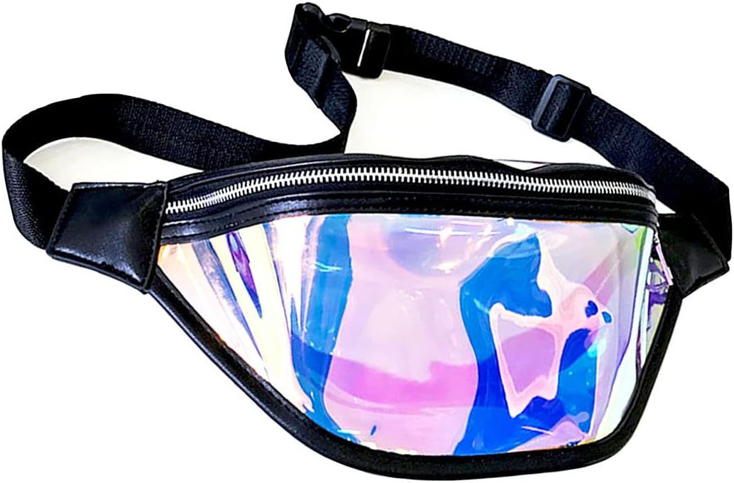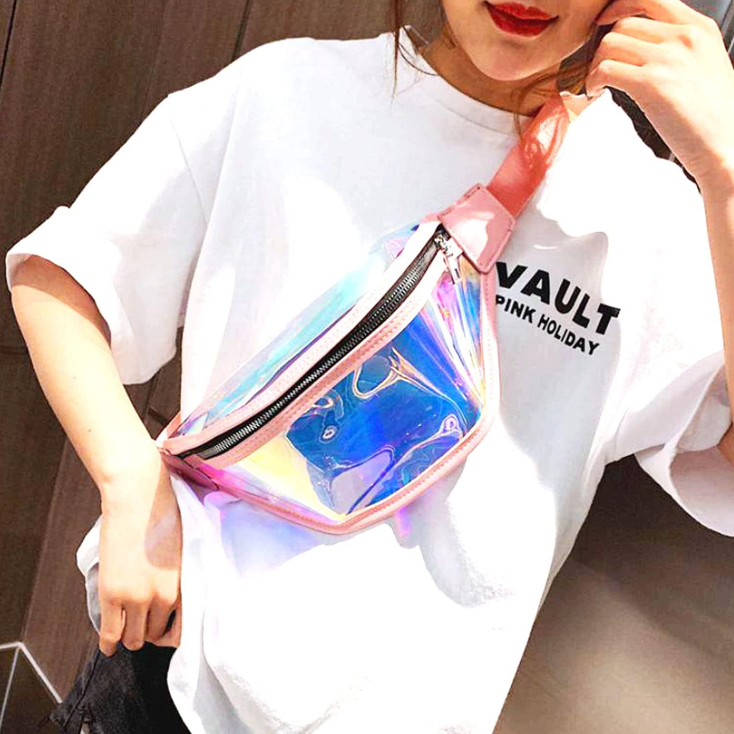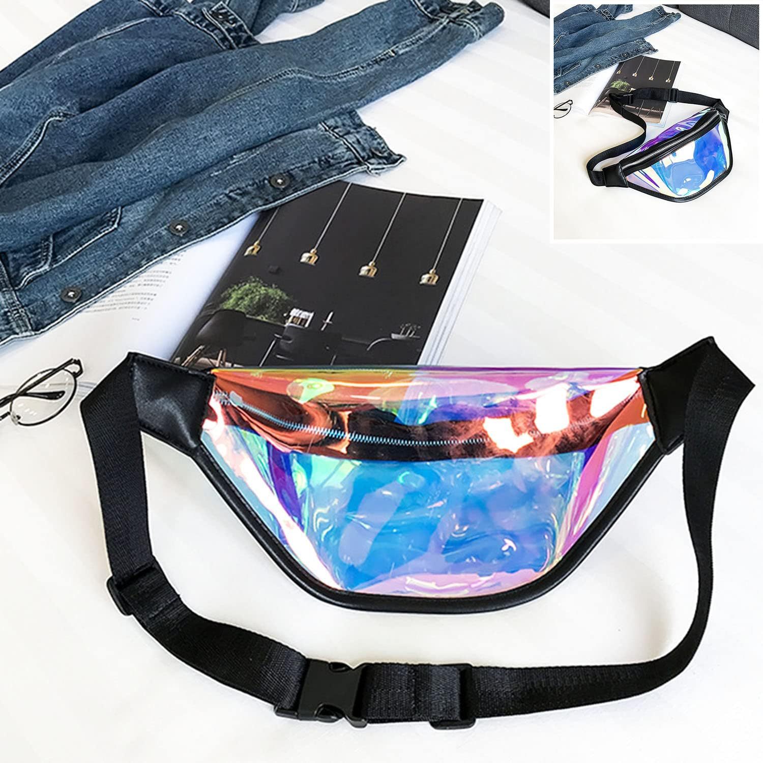 亚马逊炫彩TPU腰包镭射女士胸包户外跑步防水斜挎包透明PVC挂包批