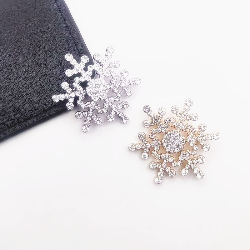镶钻圣诞雪花胸针饰品 跨境服饰配饰批发合金镶水钻满钻胸花胸章