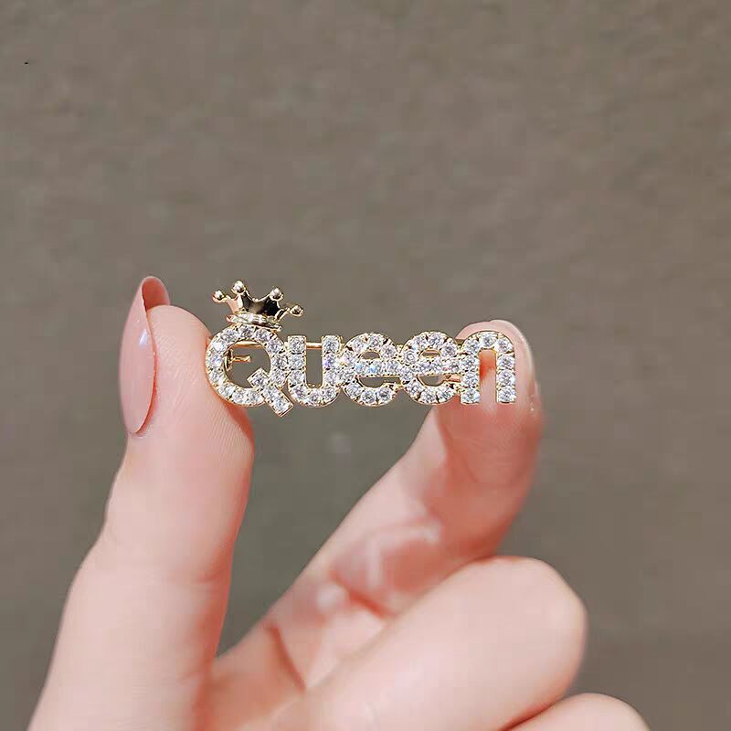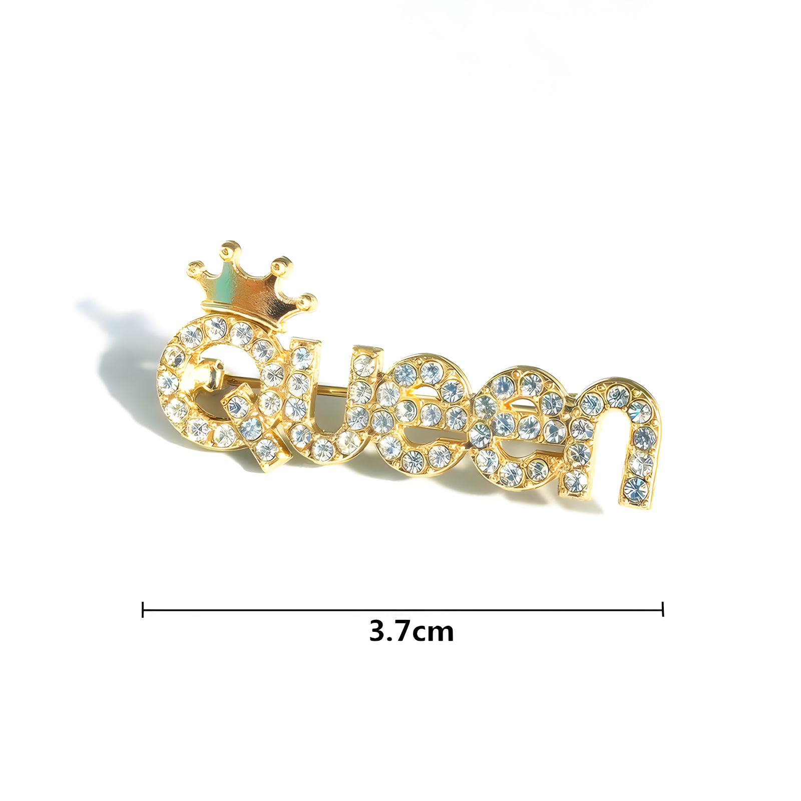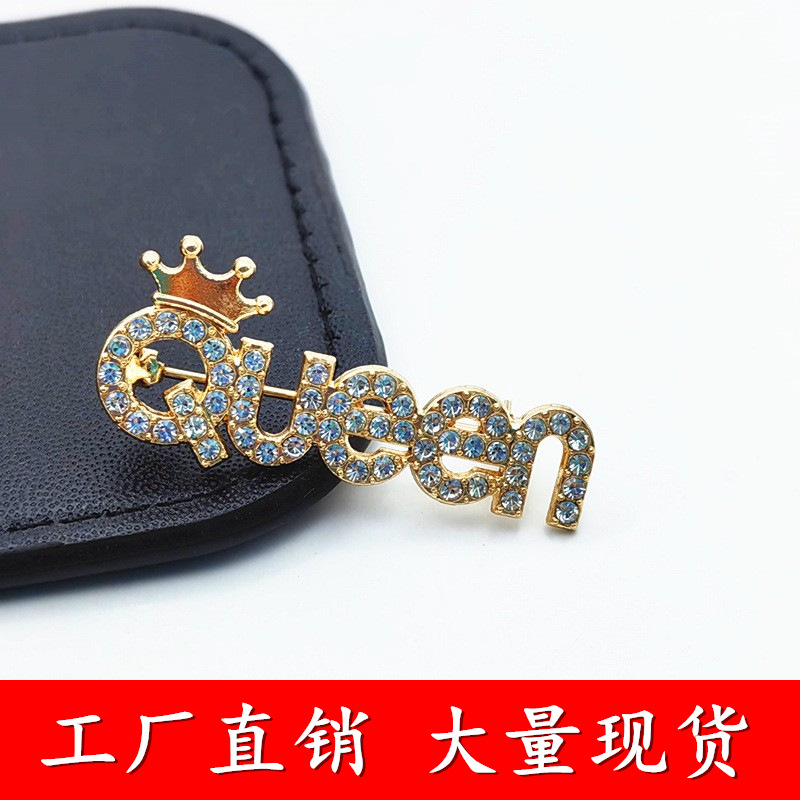 跨境英文字母QUEEN胸针胸花女个性别针防走光扣开衫短袖西装配饰