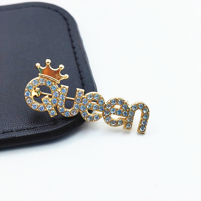 cross-border english letter queen brooch corsage female personalized pin anti-unwanted-exposure buckle cardigan short sleeve businese suit accessories