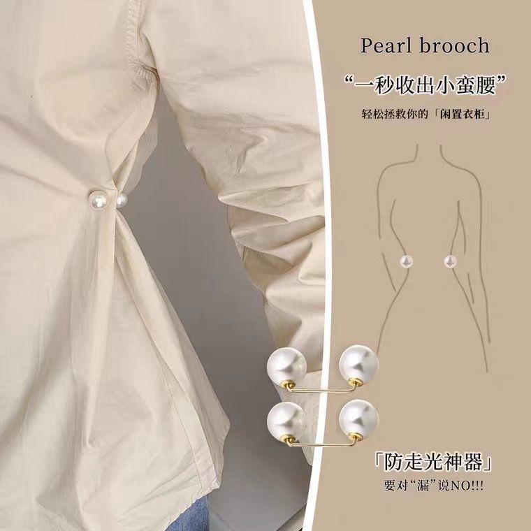 胸针防走光神器珍珠收腰别针免缝小胸针女百搭气质背带裤固定衣服
