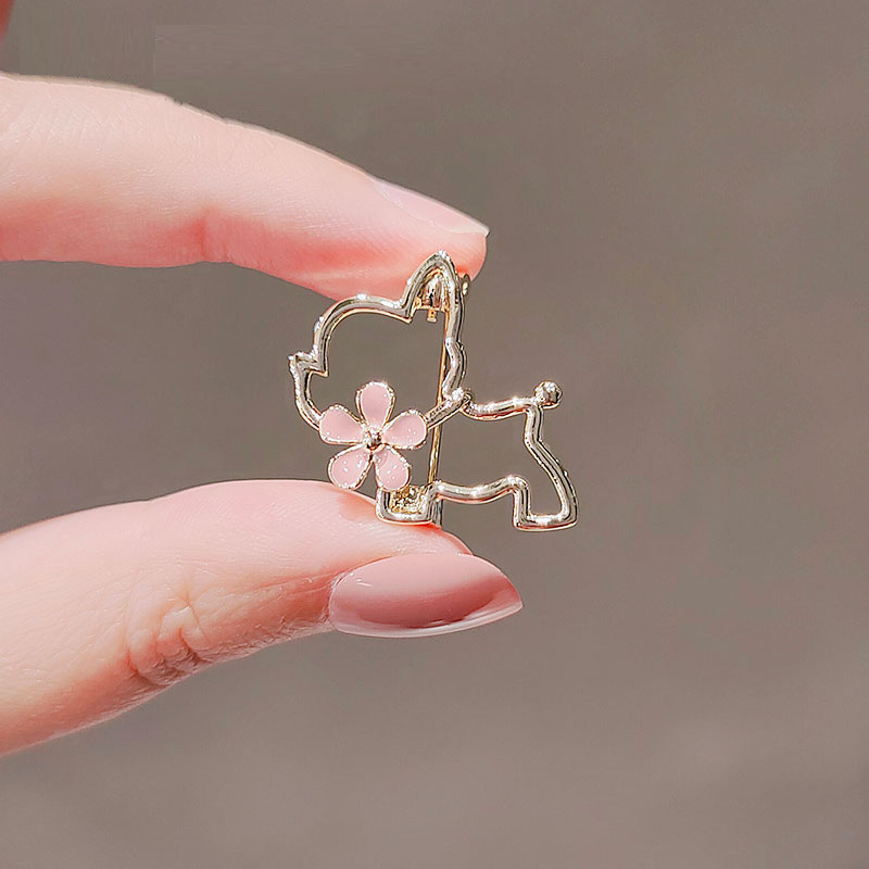 防走光胸针女金色樱花小狗胸针高档女西装别针配饰小神器饰品