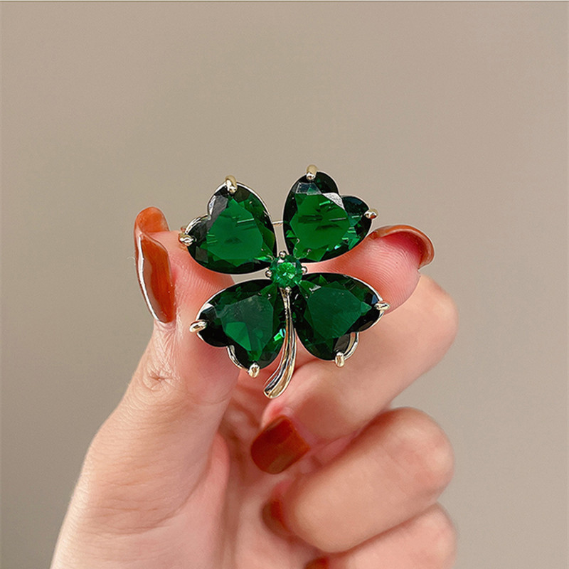 幸运草防走光胸针复古祖母绿胸花女固定衣服防走光扣气质别针轻奢