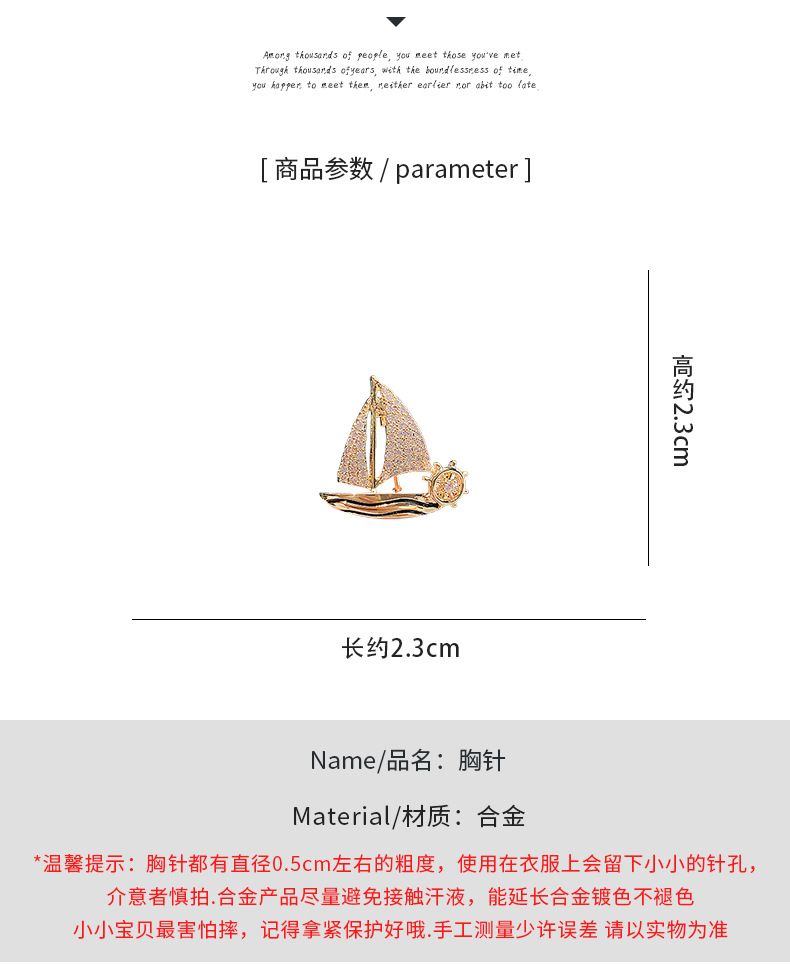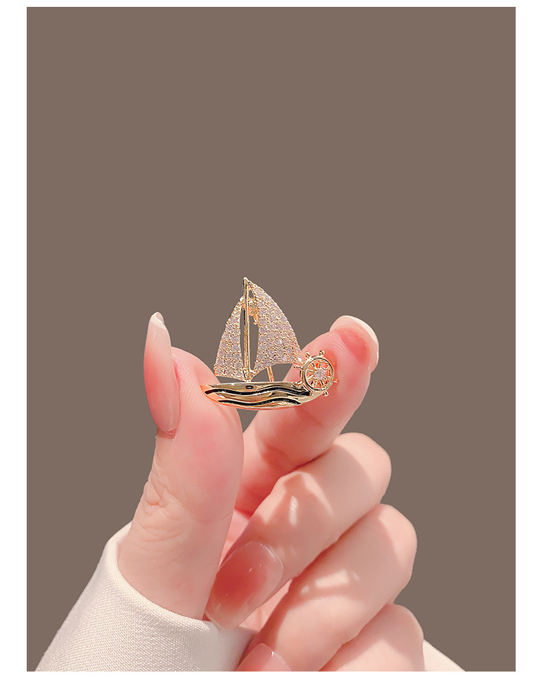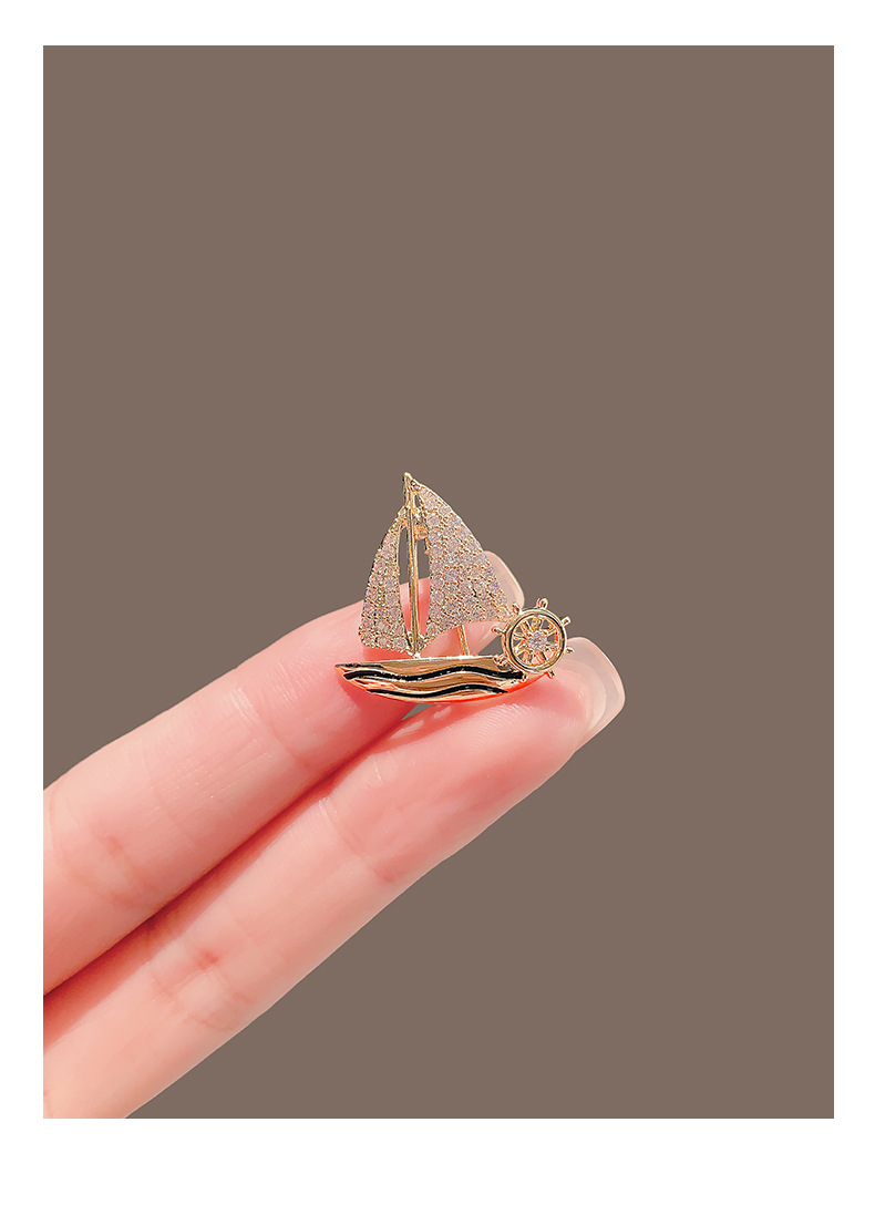 小帆船胸针高级感小众高档男女气质一帆风顺别针防走光扣胸花配饰