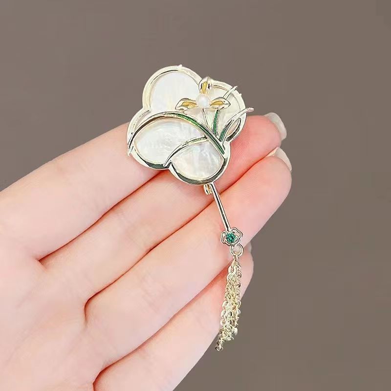 兰花古风胸针高档ins女中国风扇子流苏西装别针旗袍压襟胸花批发