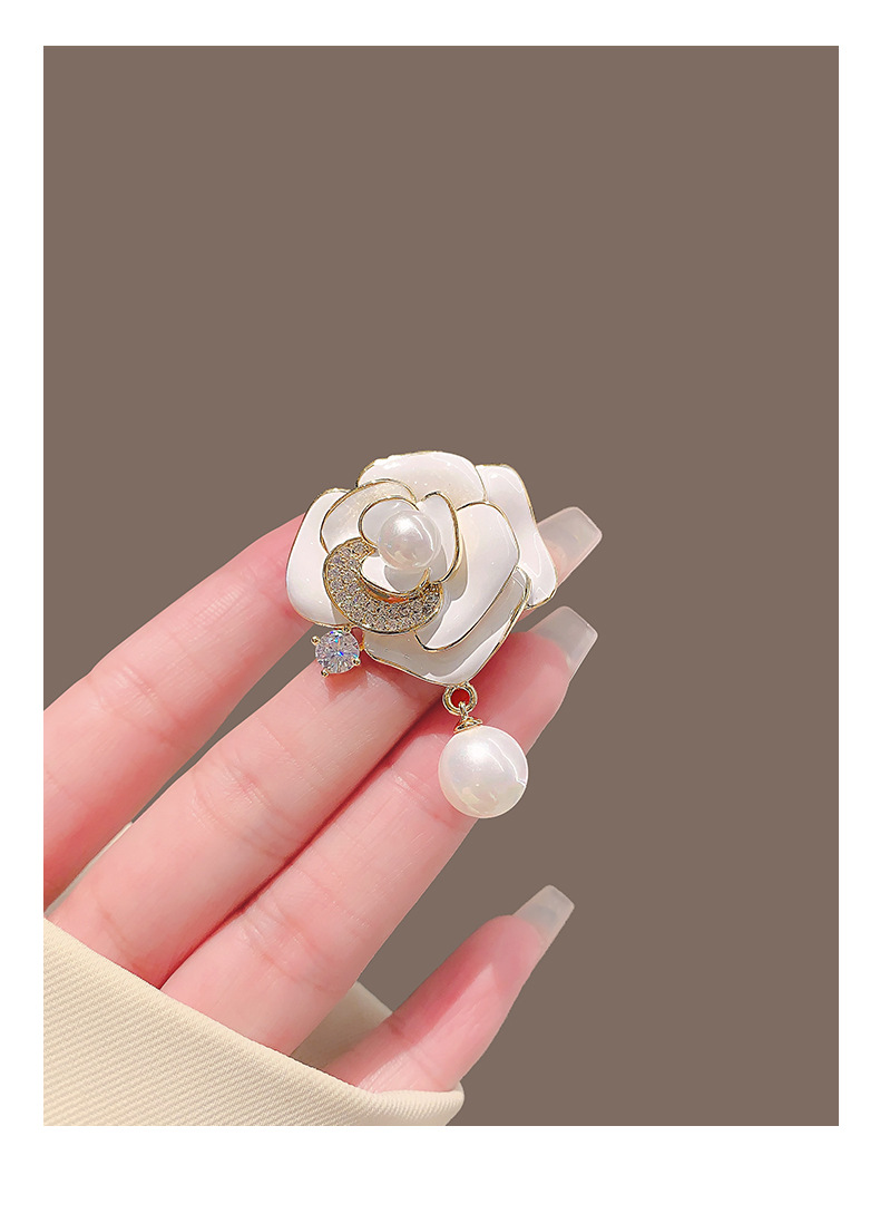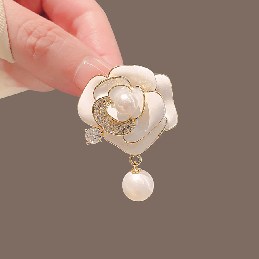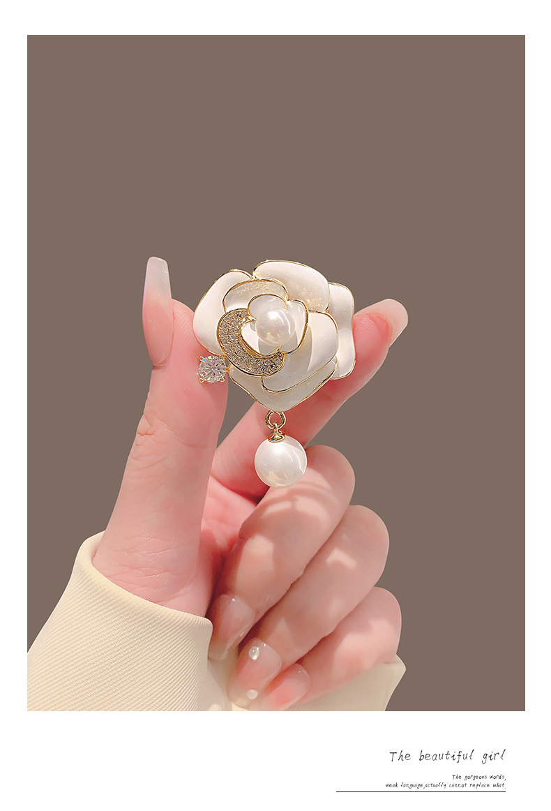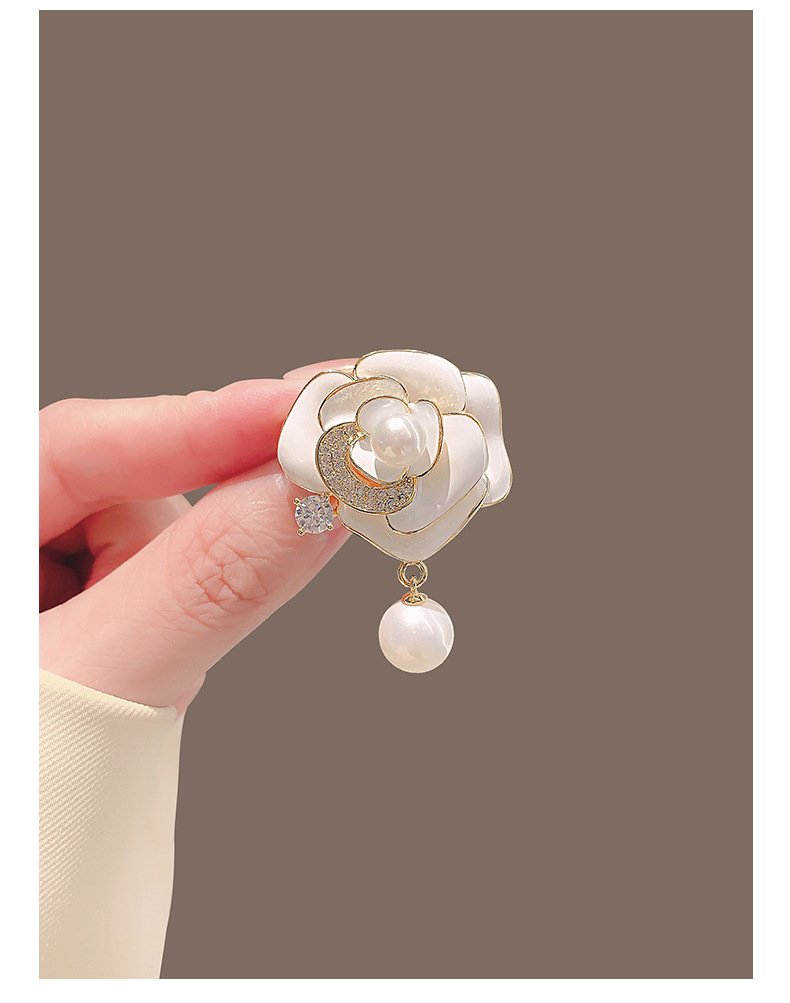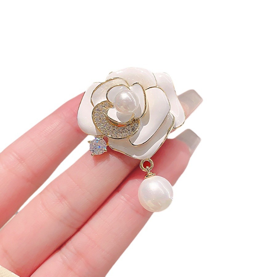 山茶花珍珠胸针女高级感高端气质西装胸花设计感高档别针百搭配饰