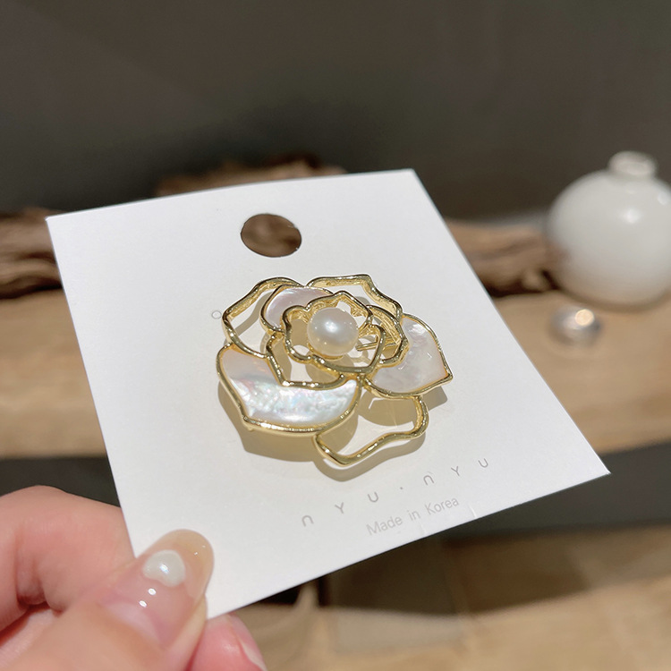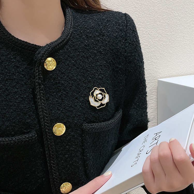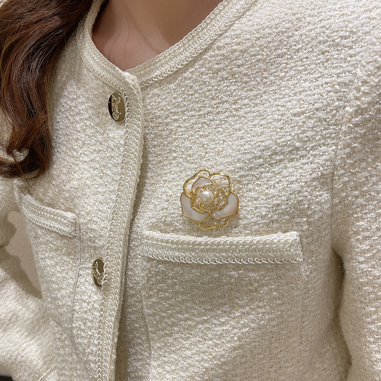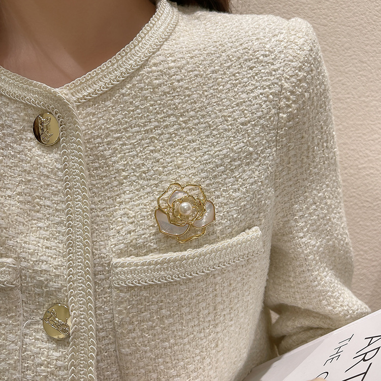 复古法式珍珠山茶花胸花气质小香风胸针高档女款精致西装小众配饰
