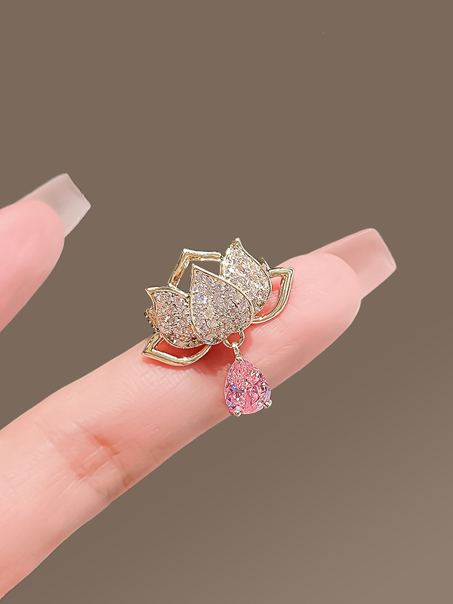 水莲花中国风胸针女高档气质小胸花夏季别针防走光扣固定衣服配饰